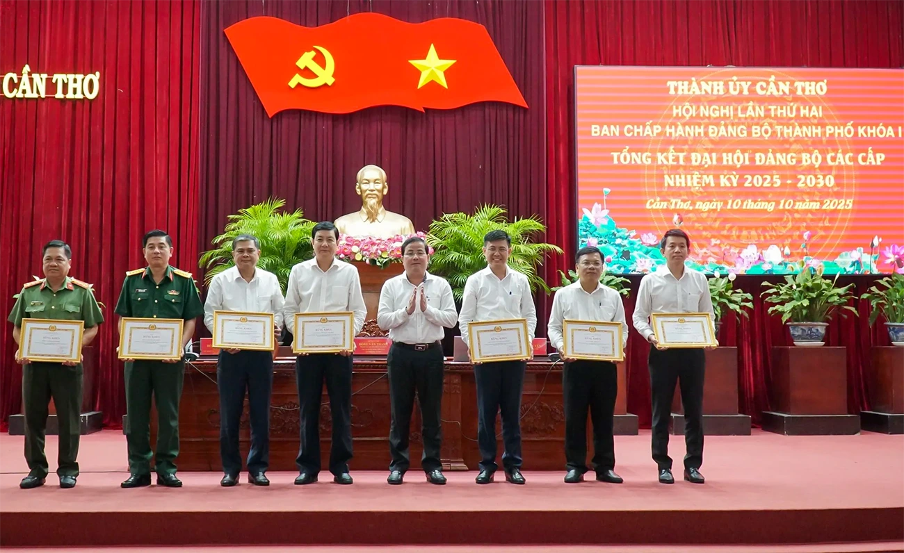 Tại hội nghị có 14 tập thể, 28 cá nhân có thành tích trong công tác tổ chức đại hội đảng bộ cấp trên trực tiếp cơ sở lần thứ I, nhiệm kỳ 2025-2030 và có 7 tập thể, 72 cá nhân có thành tích trong công tác tổ chức Đại hội đại biểu Đảng bộ TP Cần Thơ lần thứ I, nhiệm kỳ 2025-2030 được Ban Thường vụ Thành ủy tặng bằng khen.