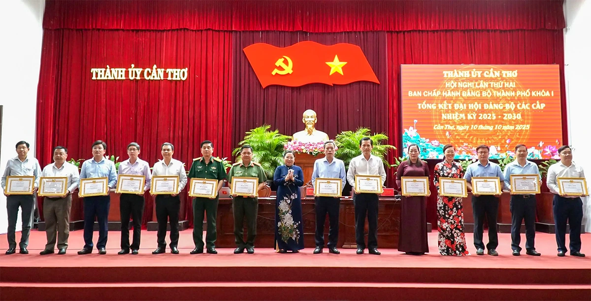 Các tập thể có thành tích trong công tác tổ chức Đại hội đại biểu Đảng bộ TP Cần Thơ lần thứ I, nhiệm kỳ 2025-2030 được Ban Thường vụ Thành ủy tặng bằng khen.