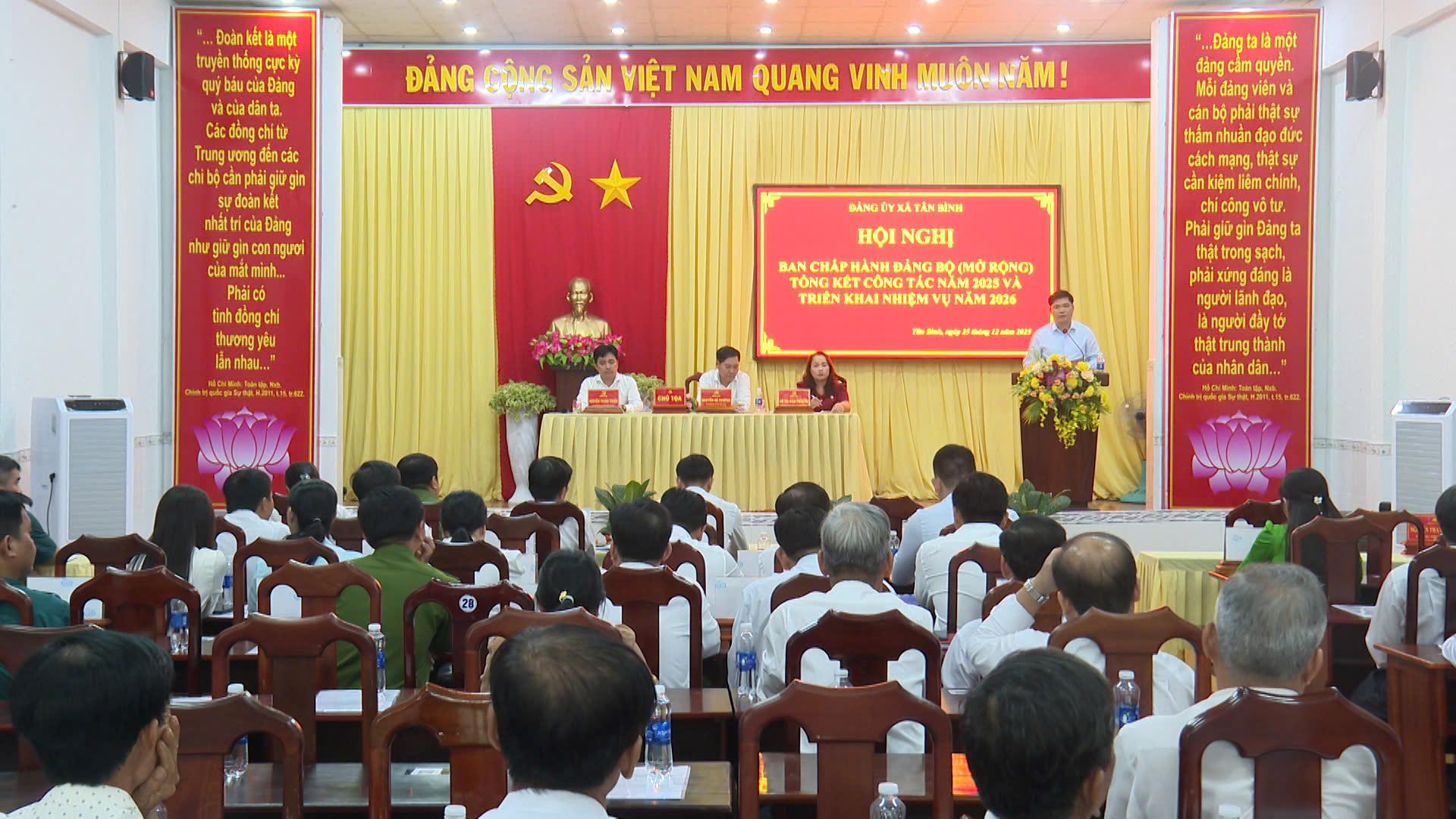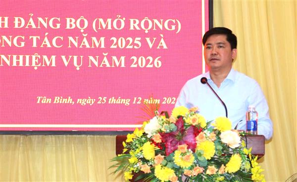 Năm 2026, năm đầu thực hiện Nghị quyết Đại hội đại biểu Đảng bộ xã Tân Bình lần thứ I; tổ chức bầu cử đại biểu Quốc hội khóa XVI và HĐND các cấp nhiệm kỳ 2026-2031, đồng chí Nguyễn Tuấn Anh, Phó Bí thư Thành ủy, Trưởng đoàn Đại biểu Quốc hội thành phố đề nghị Đảng bộ xã Tân Bình tiếp tục củng cố, kiện toàn tổ chức bộ máy, nâng cao năng lực lãnh đạo của Đảng bộ xã; rà soát, phân công nhiệm vụ theo phương châm “rõ người, rõ việc, rõ trách nhiệm, rõ thời hạn, rõ lộ trình, rõ kết quả”; nâng cao năng lực lãnh đạo, chất lượng sinh hoạt chi bộ; xây dựng đội ngũ cán bộ đủ phẩm chất, năng lực, uy tín; đẩy mạnh cải cách hành chính gắn với chuyển đổi số. Đồng thời, lãnh đạo phát triển kinh tế - xã hội bền vững, phát huy lợi thế địa phương; chăm lo văn hóa - xã hội, nâng cao đời sống Nhân dân; giữ vững quốc phòng, an ninh; tổ chức thành công cuộc bầu cử đại biểu Quốc hội khóa XVI và đại biểu Hội đồng nhân dân các cấp nhiệm kỳ 2026-2031.