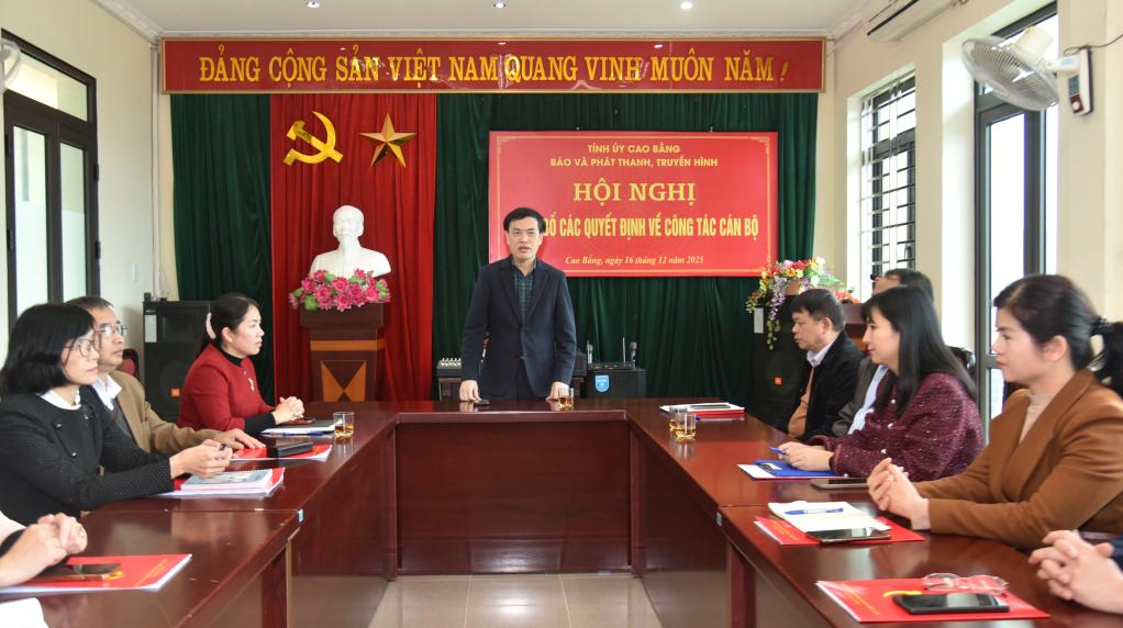 Hội nghị công bố 21 quyết định của Giám đốc Báo và PTTH Cao Bằng về việc bổ nhiệm viên chức giữ chức vụ lãnh đạo, quản lý tại một số phòng chuyên môn của cơ quan. Các quyết định có hiệu lực từ ngày 1/12/2025.