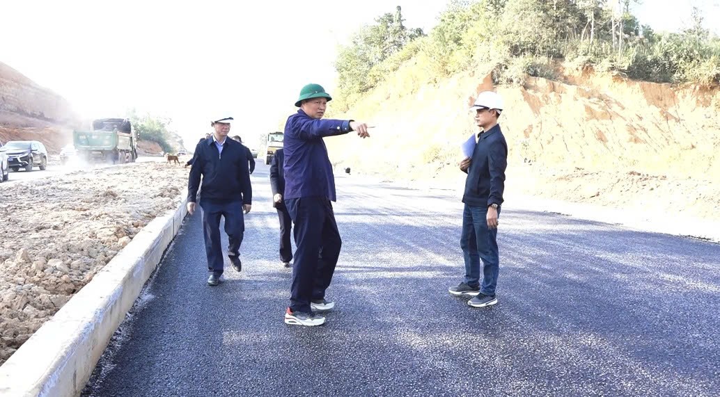 Đề nghị Chủ đầu tư, Ban quản lý dự án tập trung kiểm tra, quản lý chất lượng công trình, đôn đốc các nhà thầu, đơn vị thi công vừa đẩy nhanh tiến độ vừa đảm bảo chất lượng công trình, tiếp tục huy động máy móc, công nhân, tăng ca kíp làm việc, tiến tới trải thảm bê tông nhựa mặt đường trên toàn tuyến, hoàn thành cơ bản các hạng mục chính trong năm 2025 và đưa vào khai thác sử dụng trước Tết nguyên đán Bính Ngọ 2026.