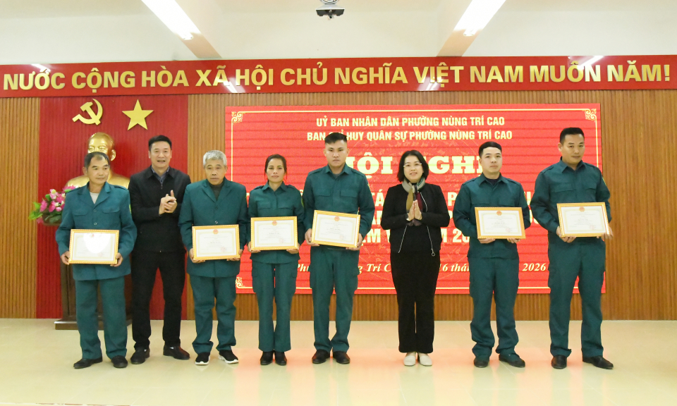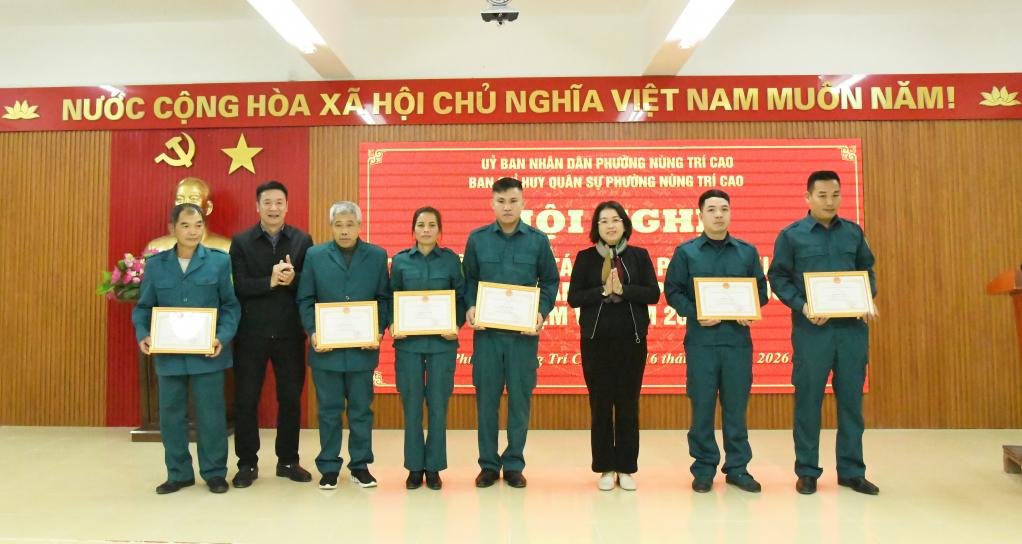 Nhân dịp này, UBND phường Nùng Trí Cao khen thưởng 6 cá nhân có thành tích xuất sắc trong thực hiện công tác quốc phòng, quân sự địa phương năm 2025.