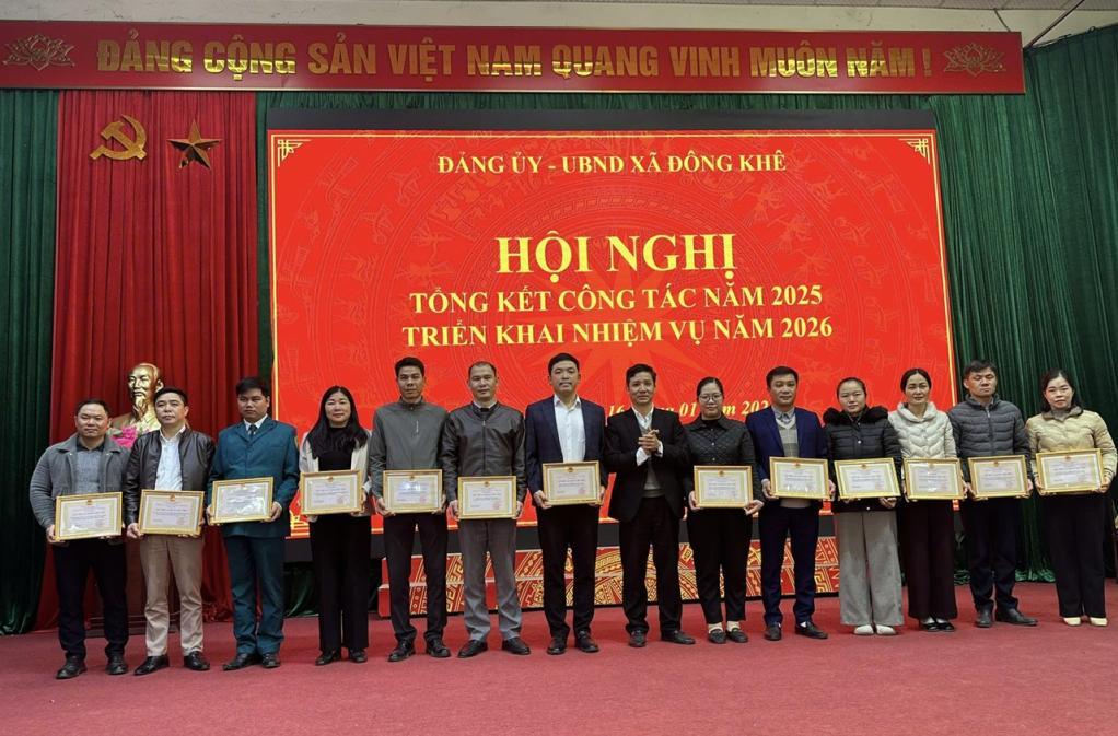Nhân dịp này, Ban Thường vụ Đảng ủy xã Đông Khê tặng Giấy khen cho 7 tổ chức đảng và 84 đảng viên đạt “Hoàn thành xuất sắc nhiệm vụ” tiêu biểu năm 2025; UBND xã khen thưởng danh hiệu Lao động tiên tiến cho 15 tập thể, 69 cá nhân; tặng danh hiệu Chiến sĩ thi đua cơ sở cho 13 cá nhân; tặng Giấy khen cho 1 tập thể, 1 cá nhân có thành tích tiêu biểu năm 2025; khen thưởng 3 cá nhân có thành tích trong phòng, chống, khắc phục hậu quả thiên tai, bão lũ, hỗ trợ người dân.