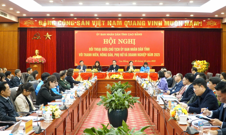 Chiều 30/12, UBND tỉnh tổ chức Hội nghị đối thoại giữa Chủ tịch UBND tỉnh với thanh niên, nông dân, phụ nữ và doanh nghiệp năm 2025. Đồng chí Lê Hải Hòa, Phó Bí thư Tỉnh ủy, Chủ tịch UBND tỉnh chủ trì hội nghị.