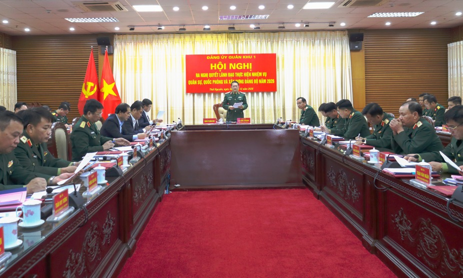 Ngày 30/12, Đảng ủy Quân khu 1 tổ chức Hội nghị ra nghị quyết lãnh đạo thực hiện nhiệm vụ quân sự, quốc phòng và xây dựng Đảng bộ năm 2026. Trung tướng La Công Phương, Bí thư Đảng ủy, Chính ủy Quân khu 1 chủ trì hội nghị.