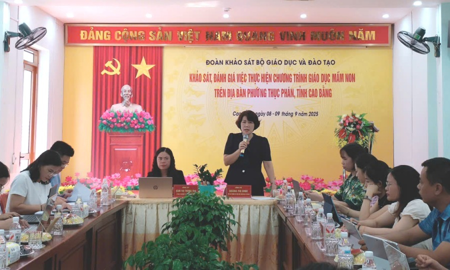 Sáng 8/9, Đoàn khảo sát của Bộ Giáo dục và Đào tạo do bà Hoàng Thị Dinh, Phó Vụ trưởng Vụ Giáo dục Mầm non (GDMN), Bộ Giáo dục và Đào tạo làm trưởng đoàn đến khảo sát, đánh giá việc thực hiện Chương trình GDMN tại phường Thục Phán.