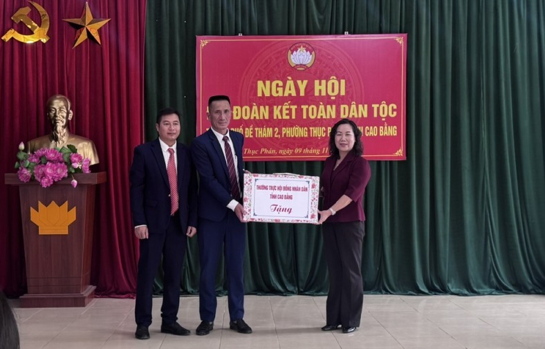 Ngày 9/11, đồng chí đồng chí Hà Nhật Lệ, Tỉnh ủy viên, Phó Chủ tịch HĐND tỉnh dự Ngày hội Đại đoàn kết toàn dân tộc tại Tổ dân phố Đề Thám 2, phường Thục Phán.