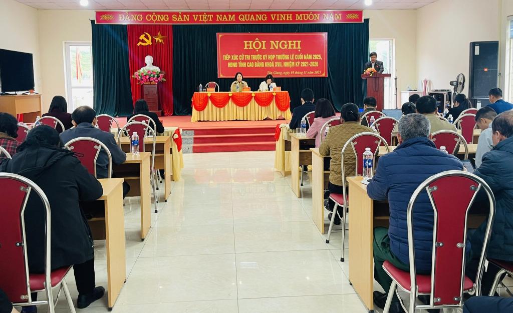 Sáng 5/11, Tổ đại biểu HĐND tỉnh số 01 gồm các đồng chí: Nguyễn Ngọc Hà, Tỉnh ủy viên, Bí thư Đảng ủy, Chủ tịch HĐND phường Nùng Trí Cao; Nguyễn Hùng Cường, Phó Trưởng Ban Văn hoá - Xã hội; Vi Thùy Anh, Giám đốc Ngân hàng TMCP Đầu tư và Phát triển Việt Nam (BIDV) Chi nhánh Cao Bằng tiếp xúc cử tri trước kỳ họp thường lệ cuối năm 2025, HĐND tỉnh khóa XVII, nhiệm kỳ 2021 - 2026 tại phường Tân Giang.