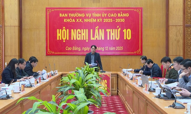 Hội nghị xem xét, cho ý kiến đối với các nội dung: Tờ trình số 03-TTr/ĐGS, ngày 12/12/2025 của Đoàn giám sát số 01 về xin ý kiến đối với Báo cáo kết quả giám sát của 3 Đoàn giám sát và dự thảo Thông báo kết luận giám sát của Ban Thường vụ Tỉnh ủy; Tờ trình số 148-TTr/ĐU, ngày 9/12/2025 của Đảng ủy UBND tỉnh về việc đề nghị Thường trực Tỉnh ủy cho ý kiến khen thưởng đối với cá nhân đề nghị khen thưởng cấp Nhà nước; Báo cáo số 84-BC/ĐU, ngày 25/11/2025 của Đảng ủy UBND tỉnh về kết quả thực hiện Quy hoạch phân khu xây dựng tỷ lệ 1/2000 khu vực Cửa khẩu Trà Lĩnh - Khu kinh tế cửa khẩu tỉnh; nghe Đảng ủy UBND tỉnh báo cáo một số nội dung thuộc thẩm quyền của Ban Thường vụ Tỉnh ủy xem xét, cho ý kiến.