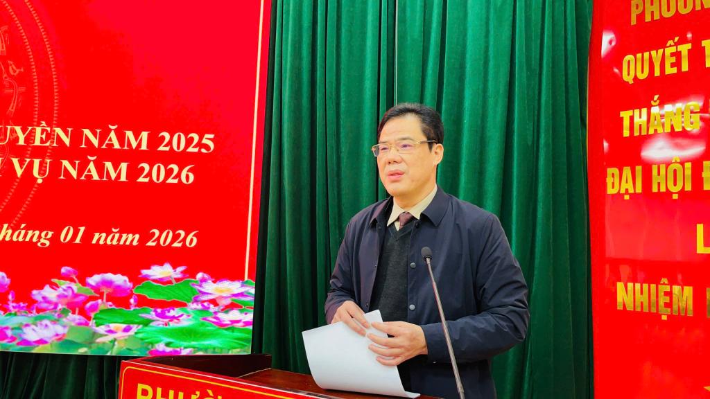 Phát biểu chỉ đạo hội nghị, Phó Bí thư Tỉnh ủy, Chủ tịch Ủy ban MTTQ tỉnh Vũ Hồng Quang nhấn mạnh: Trong thời gian tới, Đảng ủy phường cần xác định công tác xây dựng Đảng là nhiệm vụ then chốt, có ý nghĩa quyết định đến việc hoàn thành toàn bộ các nhiệm vụ chính trị của địa phương. Thực hiện tốt công tác kiểm tra, giám sát, kịp thời chấn chỉnh những biểu hiện suy thoái về tư tưởng chính trị, đạo đức, lối sống, tăng cường kỷ luật, kỷ cương trong Đảng. Chú trọng xây dựng đội ngũ cán bộ, nhất là cán bộ chủ chốt, cán bộ trẻ, cán bộ kế cận, bảo đảm đủ phẩm chất, năng lực, uy tín, ngang tầm nhiệm vụ. Tiếp tục khai thác hiệu quả lợi thế trung tâm đô thị, thu hút đầu tư, phát triển thương mại - dịch vụ chất lượng cao, dịch vụ du lịch - văn hóa. Đẩy mạnh phát triển sản phẩm OCOP, mở rộng mô hình nông nghiệp gắn với chuyển đổi số, bảo vệ môi trường. Chỉ đạo quyết liệt công tác thu ngân sách ngay từ đầu năm; đẩy nhanh tốc độ giải ngân vốn đầu tư công và các dự án phát triển quỹ đất, đô thị. Giữ vững an ninh chính trị, trật tự an toàn xã hội; thực hiện tốt nhiệm vụ quốc phòng địa phương.