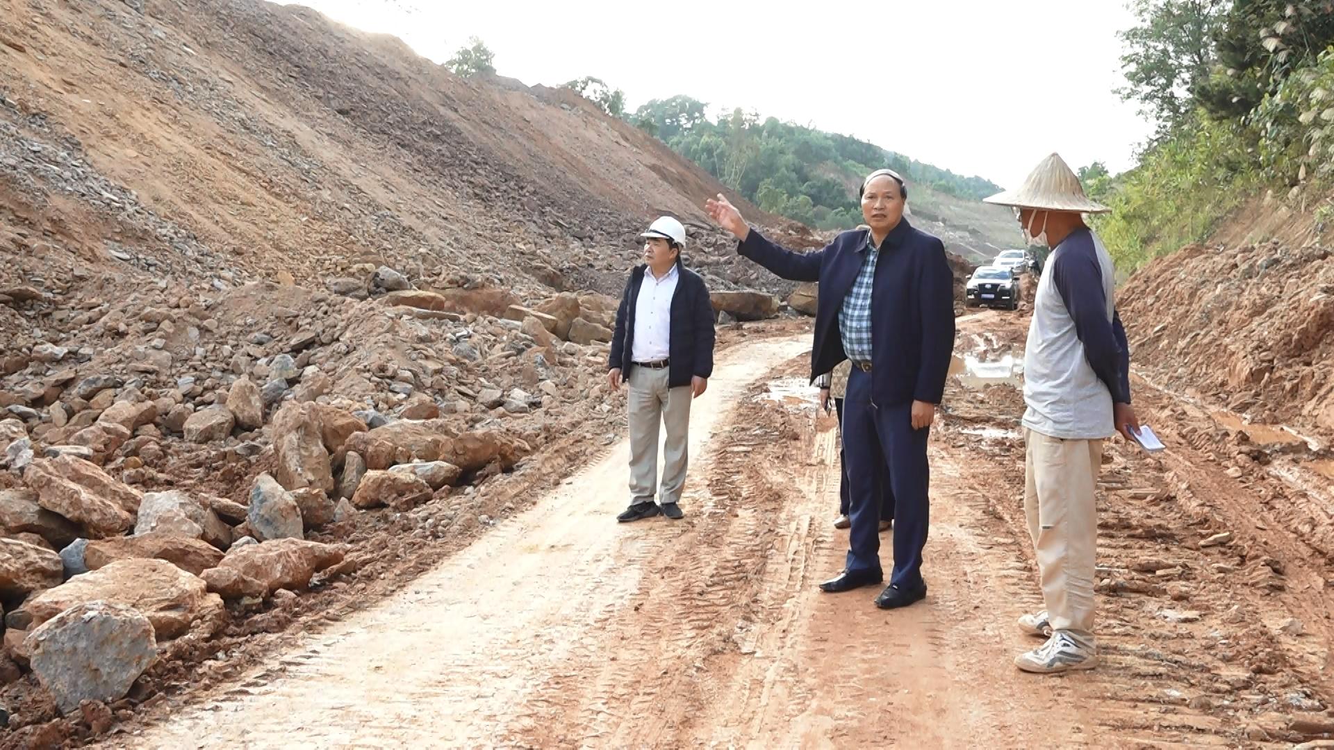 Phó Chủ tịch UBND tỉnh Hoàng Văn Thạch kiểm tra đột xuất tình hình triển khai các mũi thi công trên công trường Dự án Tuyến tránh thành phố Cao Bằng. Ảnh: B.G
