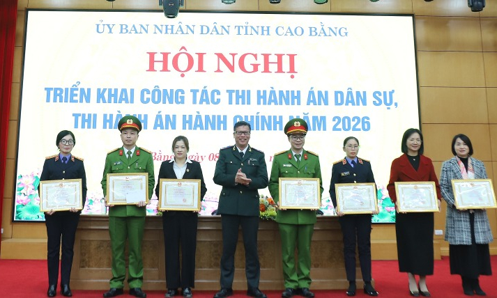 Nhân dịp này, Thủ tướng Chính phủ tặng Bằng khen 1 cá nhân có thành tích xuất sắc trong công tác tư pháp góp phần vào sự nghiệp xây dựng và bảo vệ Tổ quốc; Cục Quản lý THADS tặng Giấy khen 2 cá nhân và 5 tập thể có thành tích xuất sắc trong công tác phối hợp với THADS tỉnh Cao Bằng.