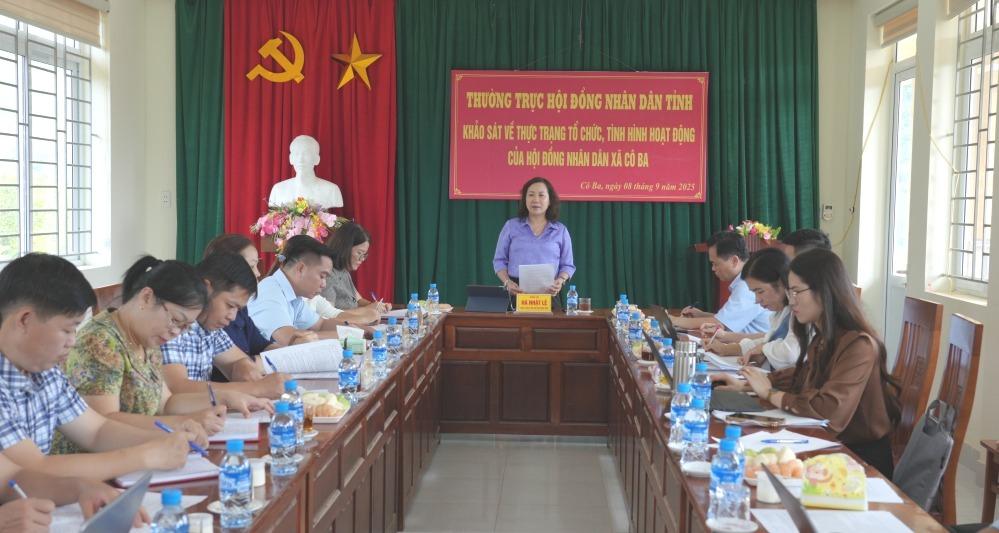 Ngày 8/9, Đoàn công tác Thường trực HĐND tỉnh do đồng chí Hà Nhật Lệ, Tỉnh ủy viên, Phó Chủ tịch HĐND tỉnh làm trưởng đoàn đến khảo sát về thực trạng tổ chức tình hình hoạt động của HĐND xã khi thực hiện mô hình chính quyền địa phương 2 cấp tại xã Cô Ba.
