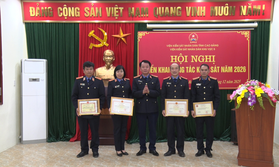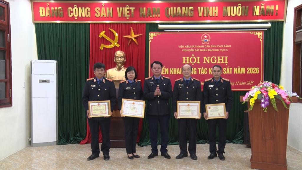 Nhân dịp này, có 4 tập thể, 5 cá nhân được Viện KSND tối cao và Viện KSND tỉnh khen thưởng có nhiều thành tích công tác năm 2025.