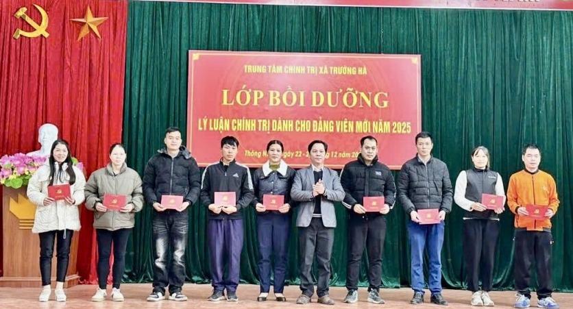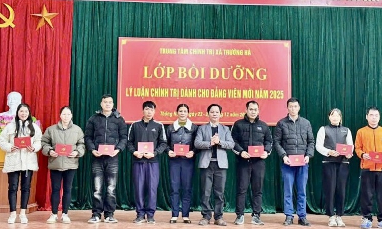 Chiều 26/12, Trung tâm Chính trị xã Trường Hà tổ chức bế giảng lớp bồi dưỡng lý luận chính trị dành cho đảng viên mới năm 2025 cho 74 học viên đến từ các chi, đảng bộ trực thuộc Đảng ủy các xã: Thông Nông, Thanh Long và Cần Yên.