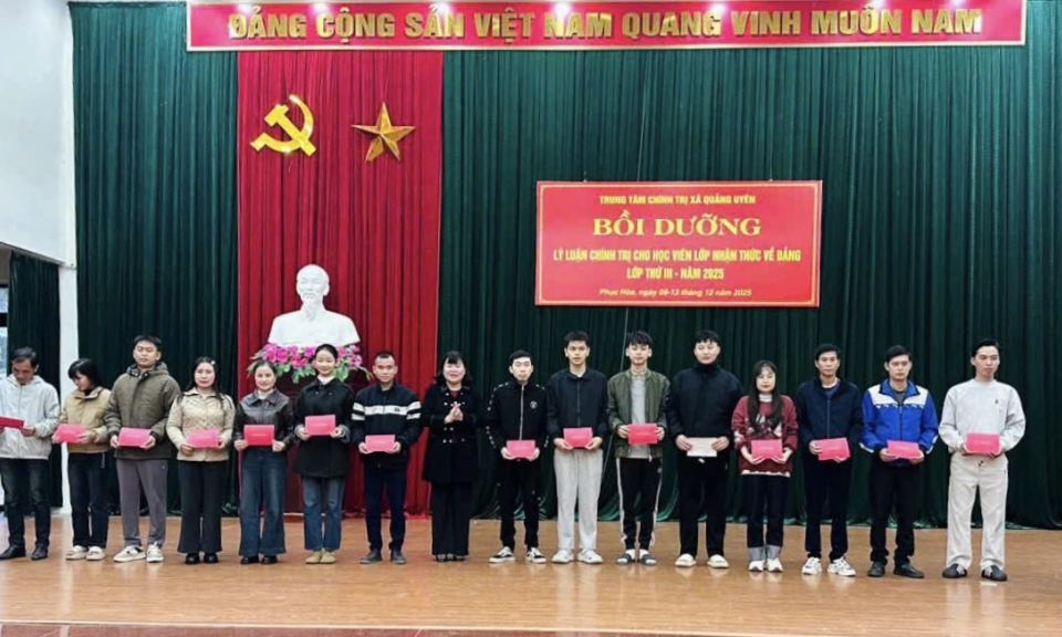 Từ ngày 9 - 13/12, Đảng ủy xã Phục Hòa, Đảng ủy xã Bế Văn Đàn, Trung tâm chính trị Quảng Uyên phối hợp tổ chức lớp bồi dưỡng nhận thức về Đảng cho 41 quần chúng ưu tú đến từ các chi bộ trực thuộc.