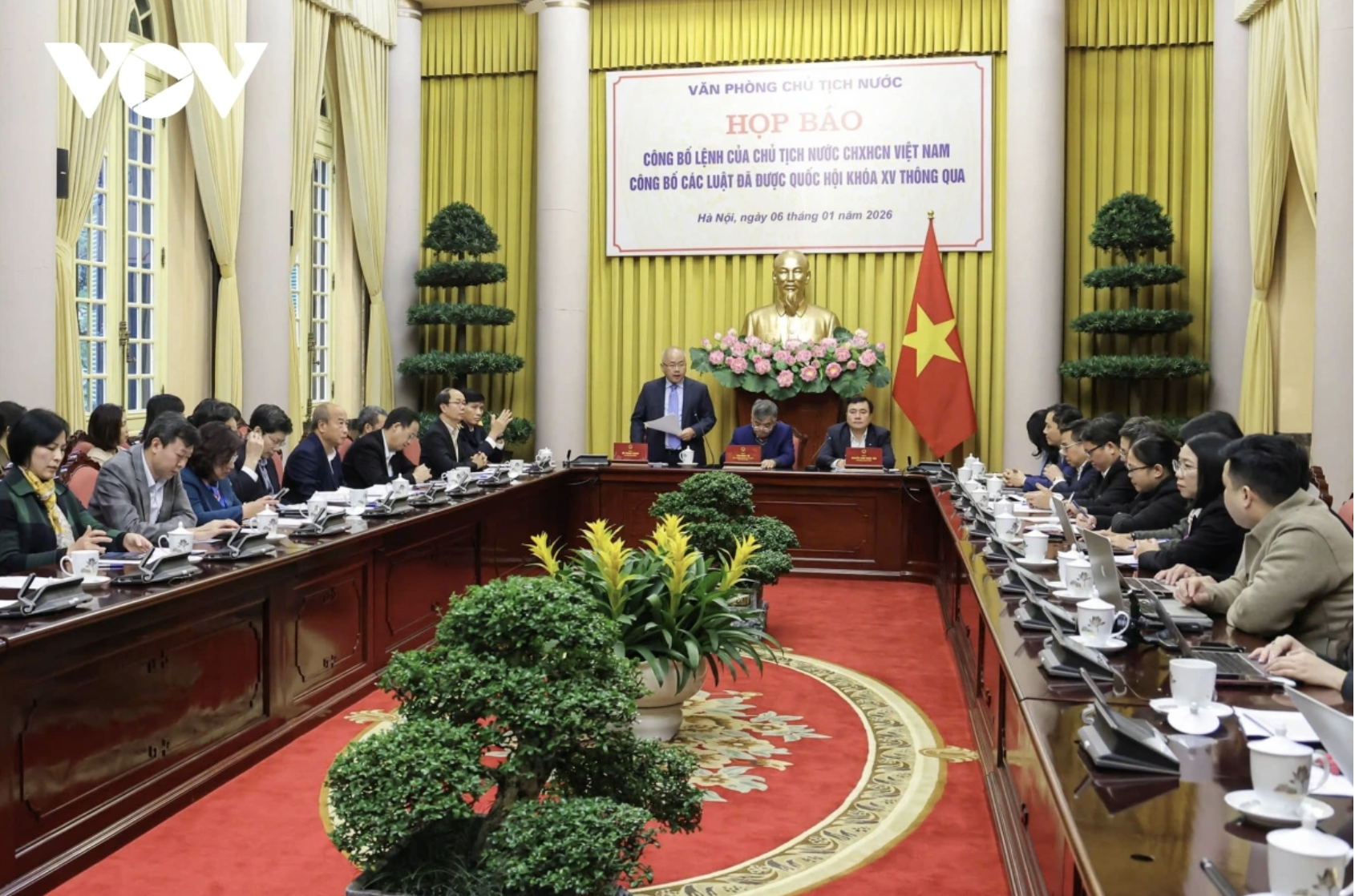 Sáng 6/1, tại Phủ Chủ tịch, Văn phòng Chủ tịch nước tổ chức họp báo công bố Lệnh của Chủ tịch nước về 12 luật đã được Kỳ họp thứ 10, Quốc hội XV thông qua.