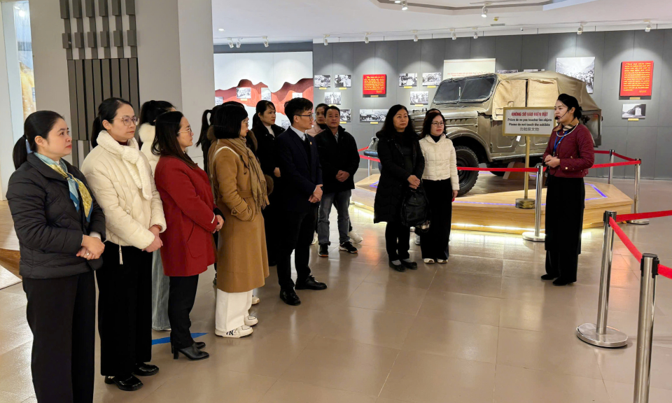 Chi bộ kinh doanh thuộc Đảng bộ Agribank Chi nhánh Cao Bằng tham quan Nhà trưng bày Khu di tích Quốc gia đặc biệt Pác Bó.