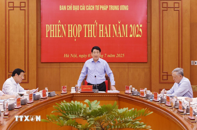 Chiều 7/7/2025, tại Hà Nội, Ban Chỉ đạo Cải cách Tư pháp Trung ương họp phiên thứ hai năm 2025, dưới sự chủ trì của Ủy viên Bộ Chính trị, Chủ tịch nước Lương Cường, Trưởng Ban Chỉ đạo.