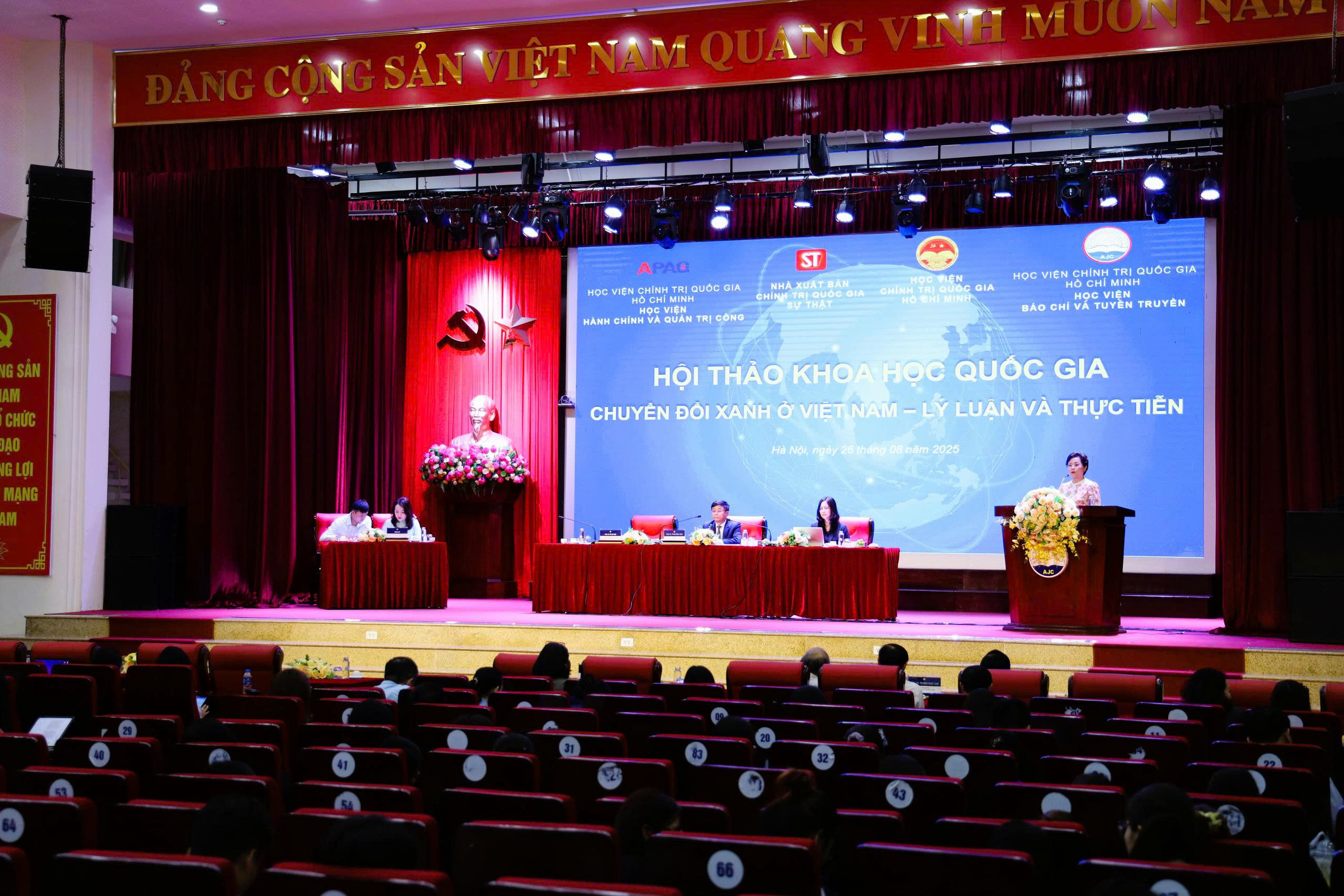 Phát biểu khai mạc, PGS.TS. Phạm Minh Sơn, Giám đốc Học viện Báo chí và Tuyên truyền khẳng định, biến đổi khí hậu và cạn kiệt tài nguyên là thách thức sống còn của nhân loại, trong đó chuyển đổi xanh không còn là lựa chọn mà là con đường tất yếu. Việt Nam với cam kết tại COP26 về mục tiêu phát thải ròng bằng “0” vào năm 2050 đã thể hiện rõ quyết tâm chính trị cao, đòi hỏi sự chung tay của Nhà nước, doanh nghiệp, người dân và giới khoa học. PGS. TS. Phạm Minh Sơn cũng nhấn mạnh, chuyển đổi xanh chính là chuẩn mực phát triển của thế kỷ XXI, vừa là trách nhiệm quốc tế, vừa là cơ hội để Việt Nam nâng cao năng lực cạnh tranh và khẳng định vị thế trên trường quốc tế.