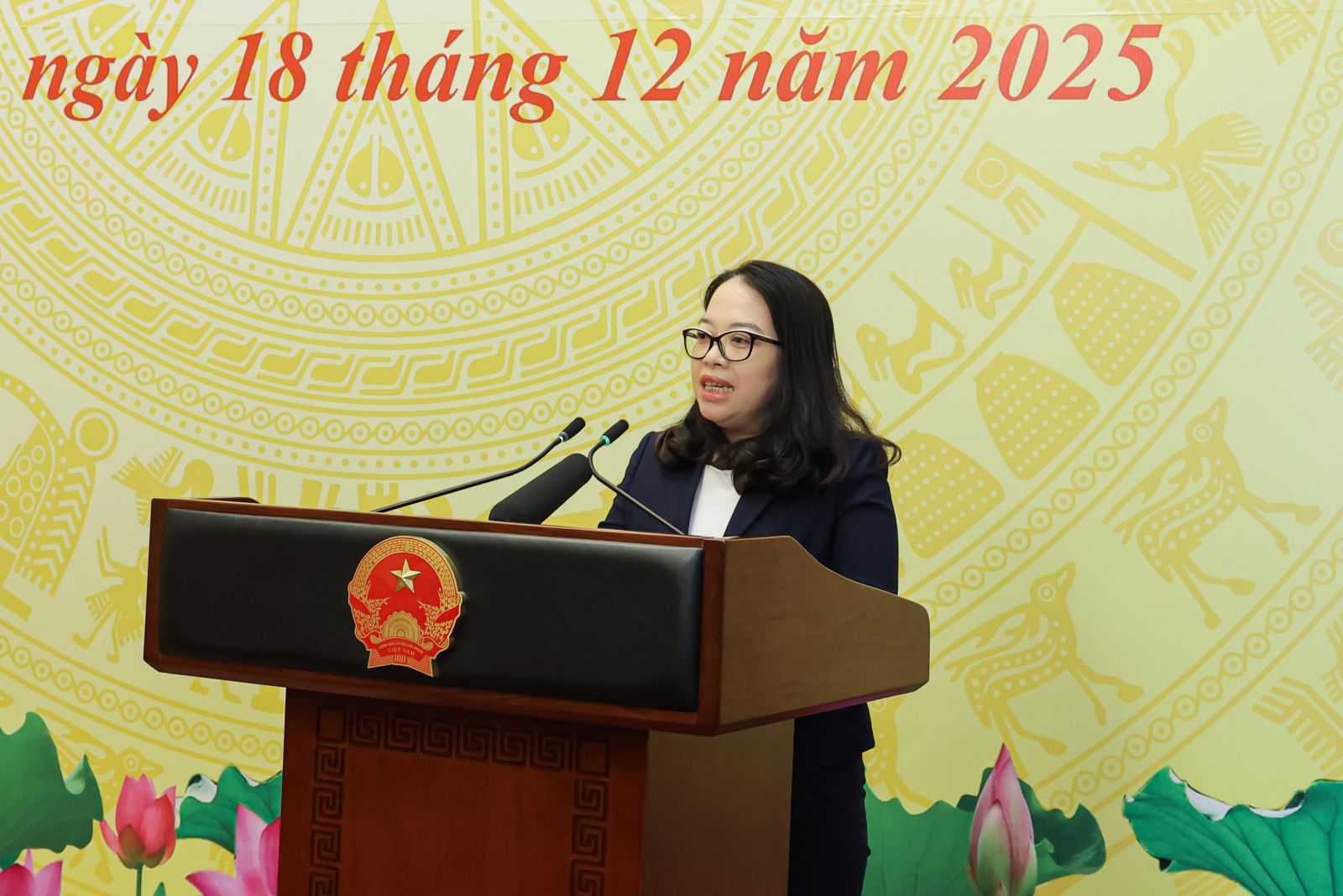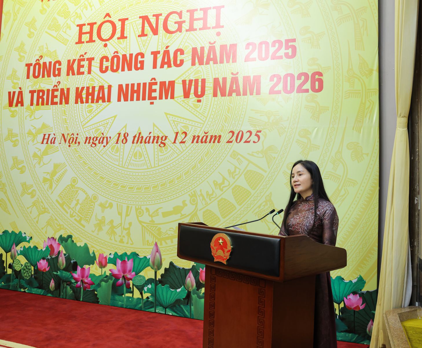 Phó Chủ nhiệm Văn phòng Chủ tịch nước Phan Thị Kim Oanh phát động thi đua năm 2026 của Văn phòng. Ảnh: VPCTN