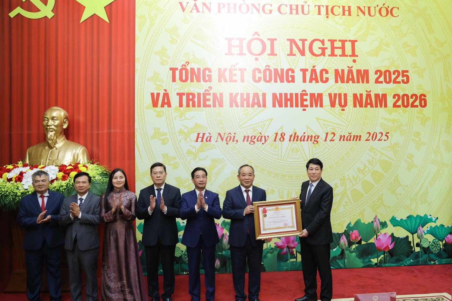 Thay mặt Lãnh đạo Đảng, Nhà nước, Chủ tịch nước ghi nhận và biểu dương những kết quả mà tập thể lãnh đạo, công chức, người lao động của Văn phòng Chủ tịch nước đã đạt được trong năm 2025; đồng thời chúc mừng các tập thể, cá nhân đã hoàn thành xuất sắc nhiệm vụ năm qua và vinh dự được đón nhận các hình thức khen thưởng, danh hiệu thi đua tại Hội nghị.