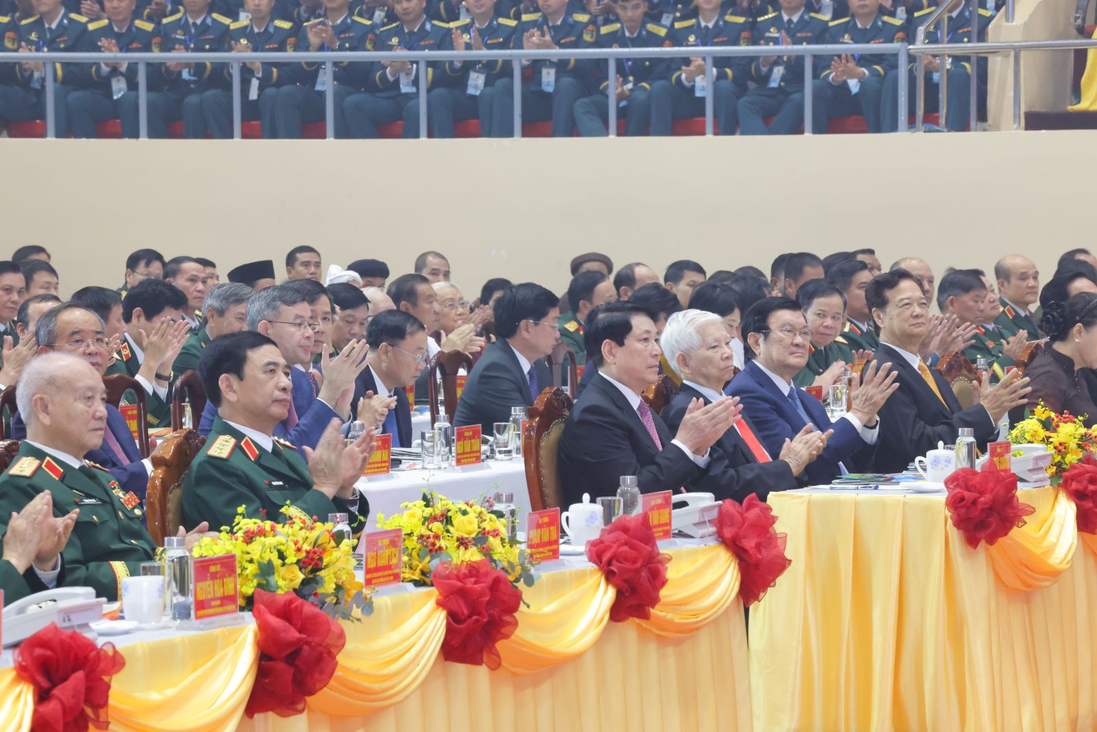 Chủ tịch nước Lương Cường, Chủ tịch Hội đồng Quốc phòng và An ninh, Thống lĩnh các lực lượng vũ trang, dự và phát biểu chỉ đạo tại Lễ kỷ niệm.