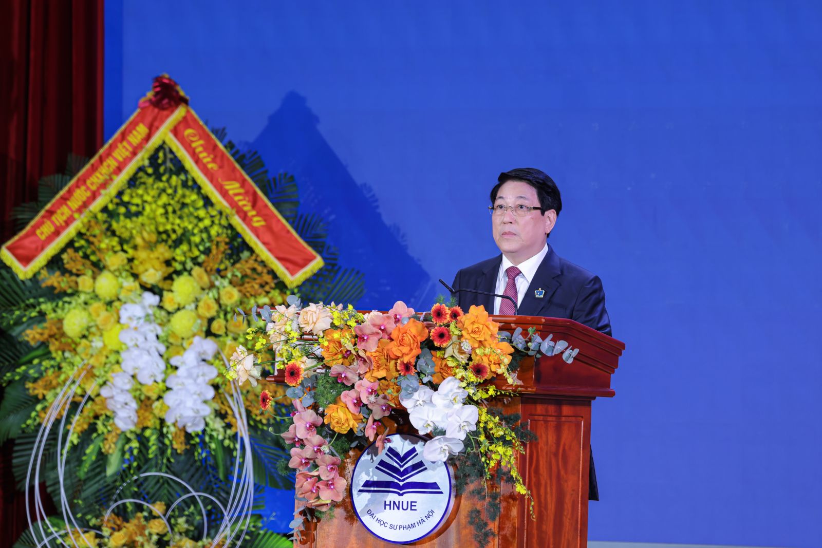 Phát biểu tại buổi lễ, Chủ tịch nước chỉ rõ trải qua 80 năm, kể từ khi nước Việt Nam Dân chủ Cộng hòa ra đời, giáo dục luôn đồng hành cùng nhân dân, dân tộc và lịch sử đất nước. Với triết lý “một dân tộc dốt là một dân tộc yếu”, ngay từ những ngày đầu lập quốc, Chủ tịch Hồ Chí Minh đã khẳng định “chống giặc đói, giặc dốt và giặc ngoại xâm” là ba nhiệm vụ trọng tâm của Chính phủ và nhân dân, Bác đã đặt giáo dục ở vị trí đặc biệt trong chiến lược kiến thiết quốc gia.