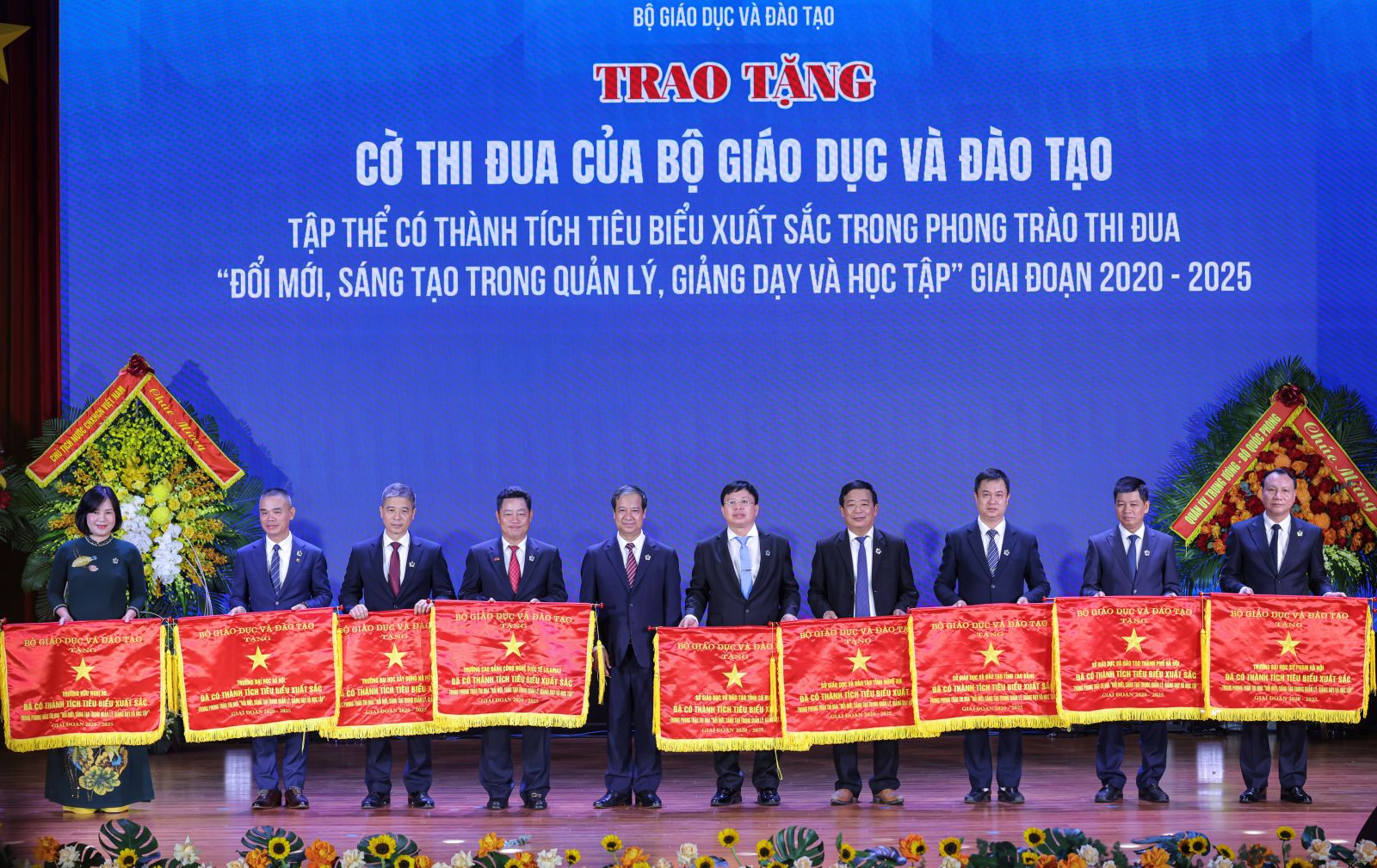 * Nhân dịp này, Bộ trưởng Giáo dục và Đào tạo đã quyết định trao tặng Cờ thi đua cho 11 tập thể, Bằng khen cho 141 tập thể 174 cá nhân có thành tích xuất sắc trong phong trào thi đua “Đổi mới, sáng tạo trong quản lý, giảng dạy và học tập” giai đoạn 2020-2025.