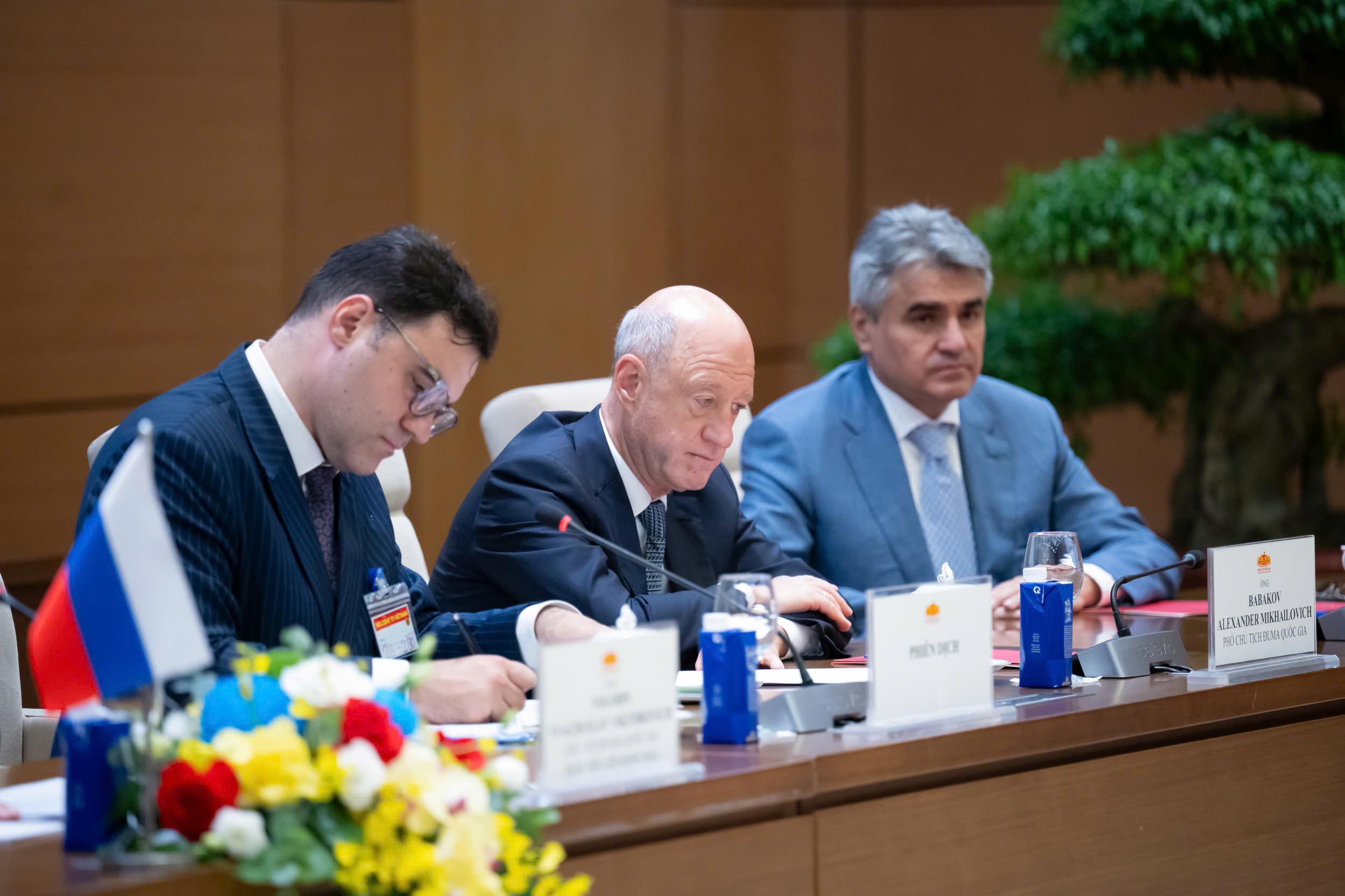 Cùng dự lễ đón và hội đàm có: Phó Chủ tịch Quốc hội Nguyễn Khắc Định, Chủ tịch Nhóm Nghị sĩ hữu nghị Việt Nam - Liên bang Nga; Phó Chủ tịch Quốc hội Vũ Hồng Thanh; Chủ nhiệm Ủy ban Quốc phòng, An ninh và Đối ngoại, Thượng tướng Lê Tấn Tới; Chủ tịch Hội đồng Dân tộc Lâm Văn Mẫn; Chủ nhiệm Ủy ban Kinh tế và Tài chính Phan Văn Mãi; Thứ trưởng Bộ Ngoại giao Đặng Hoàng Giang; Trợ lý Chủ tịch Quốc hội Nguyễn Hoàng Hải.