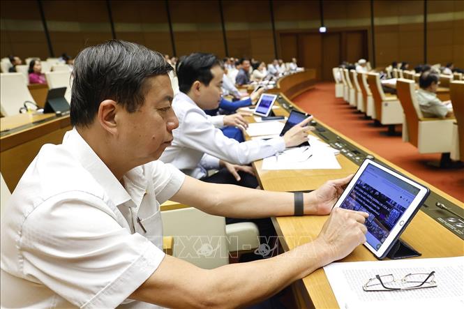 Đại biểu Quốc hội được cấp máy mới phục vụ cho hoạt động chuyển đổi số của Quốc hội. Ảnh: Doãn Tấn/TTXVN