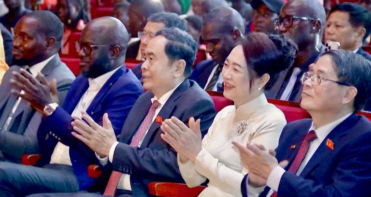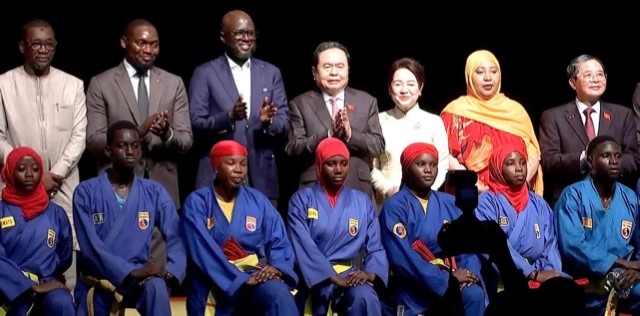 Chủ tịch Quốc hội Trần Thanh Mẫn và Phu nhân, Phó Chủ tịch Quốc hội Nguyễn Đức Hải dự khán các tiết mục biểu diễn do các võ sinh Liên đoàn Vovinam Senegal trình bày