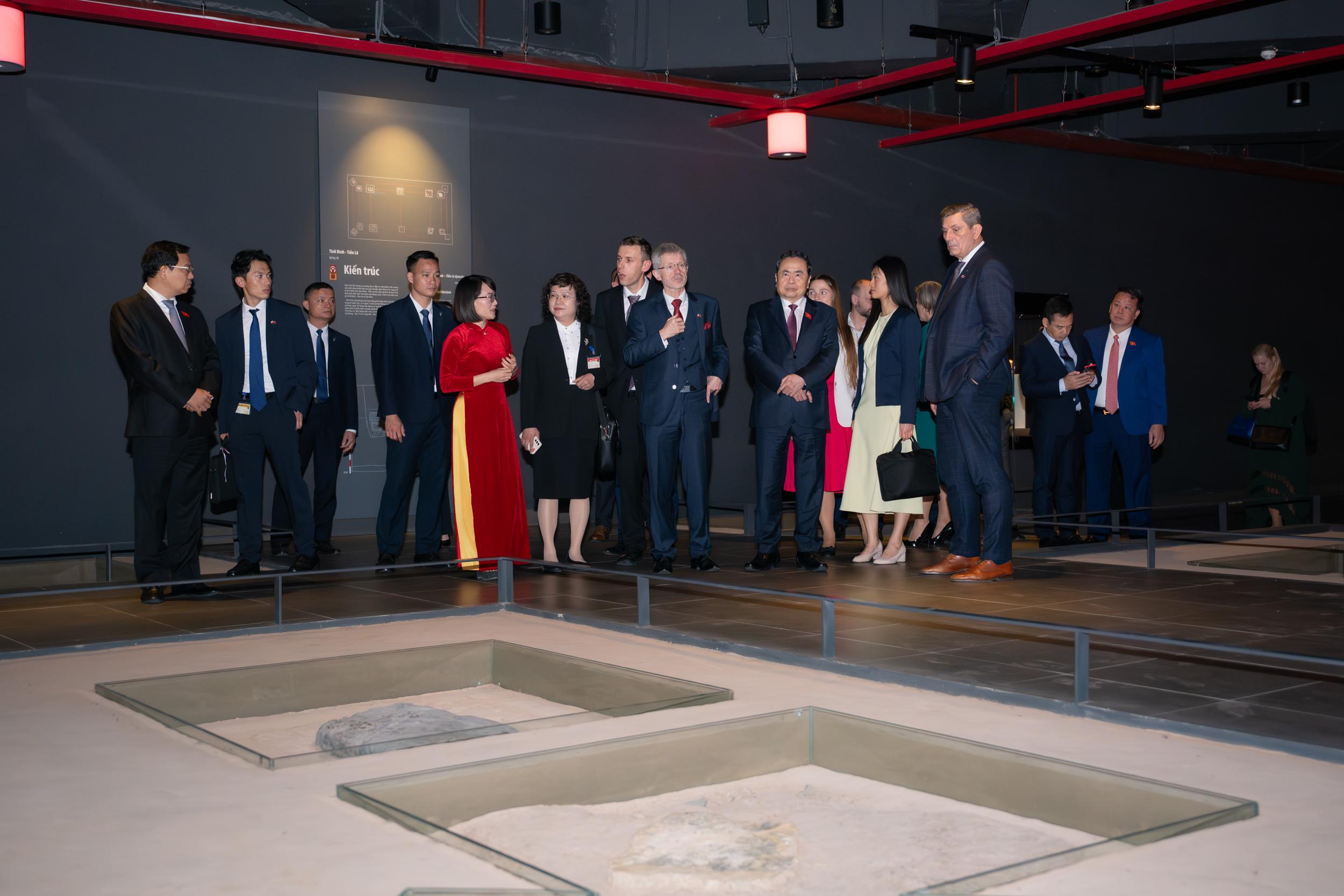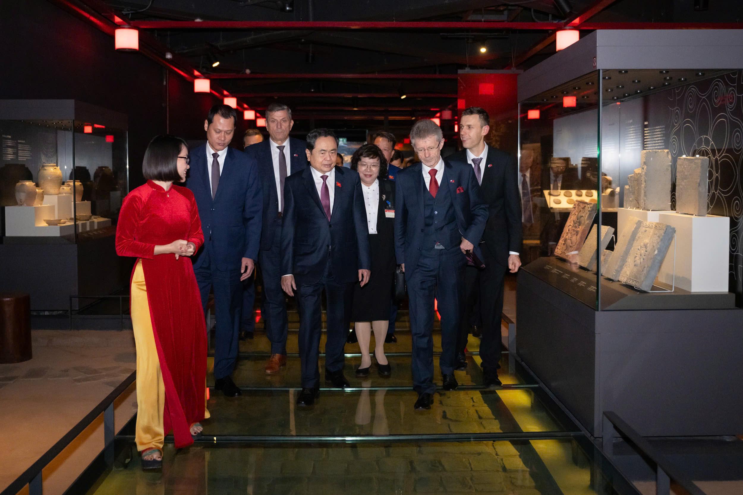 Chủ tịch Quốc hội Trần Thanh Mẫn và Chủ tịch Thượng viện Quốc hội Cộng hòa Séc Milos Vystrcil tham quan khu trưng bày khảo cổ dưới tòa nhà Quốc hội