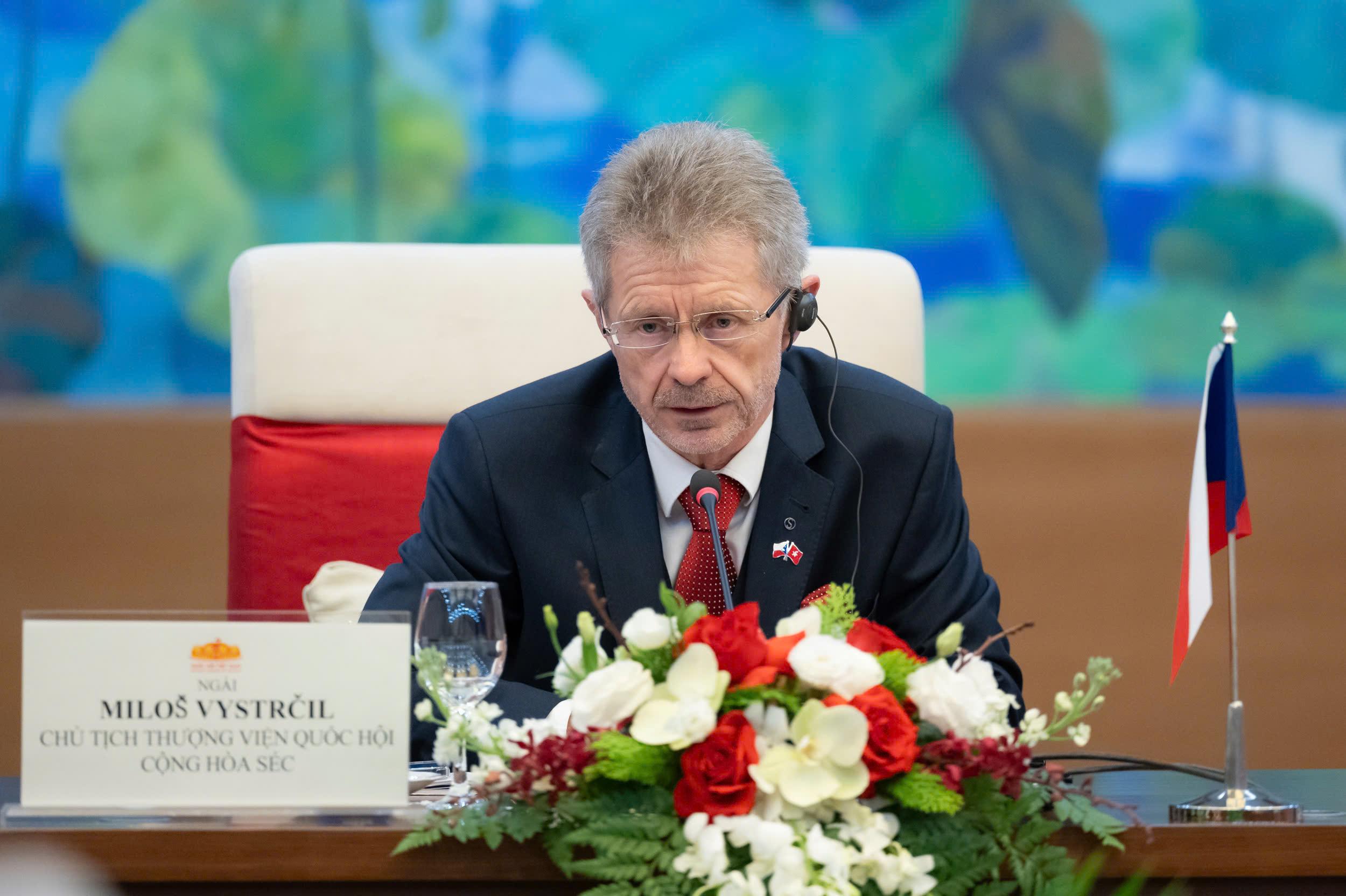 Chủ tịch Thượng viện Milos Vystrcil bày tỏ vui mừng thăm Việt Nam, ấn tượng về những thành tựu to lớn mà Việt Nam đã đạt được trong công cuộc phát triển kinh tế - xã hội và hội nhập quốc tế cũng như nền văn hóa và ẩm thực Việt Nam. Ông cảm ơn Chủ tịch Quốc hội Trần Thanh Mẫn, các vị lãnh đạo và nhân dân Việt Nam đã dành cho đoàn Quốc hội Cộng hòa Séc sự đón tiếp trọng thị, thân tình và chu đáo; chúc mừng Việt Nam nhân dịp kỷ niệm 80 năm Quốc khánh 2/9 và 50 năm thống nhất đất nước; cảm ơn Chính phủ Việt Nam đã đơn phương miễn thị thực cho công dân Séc.