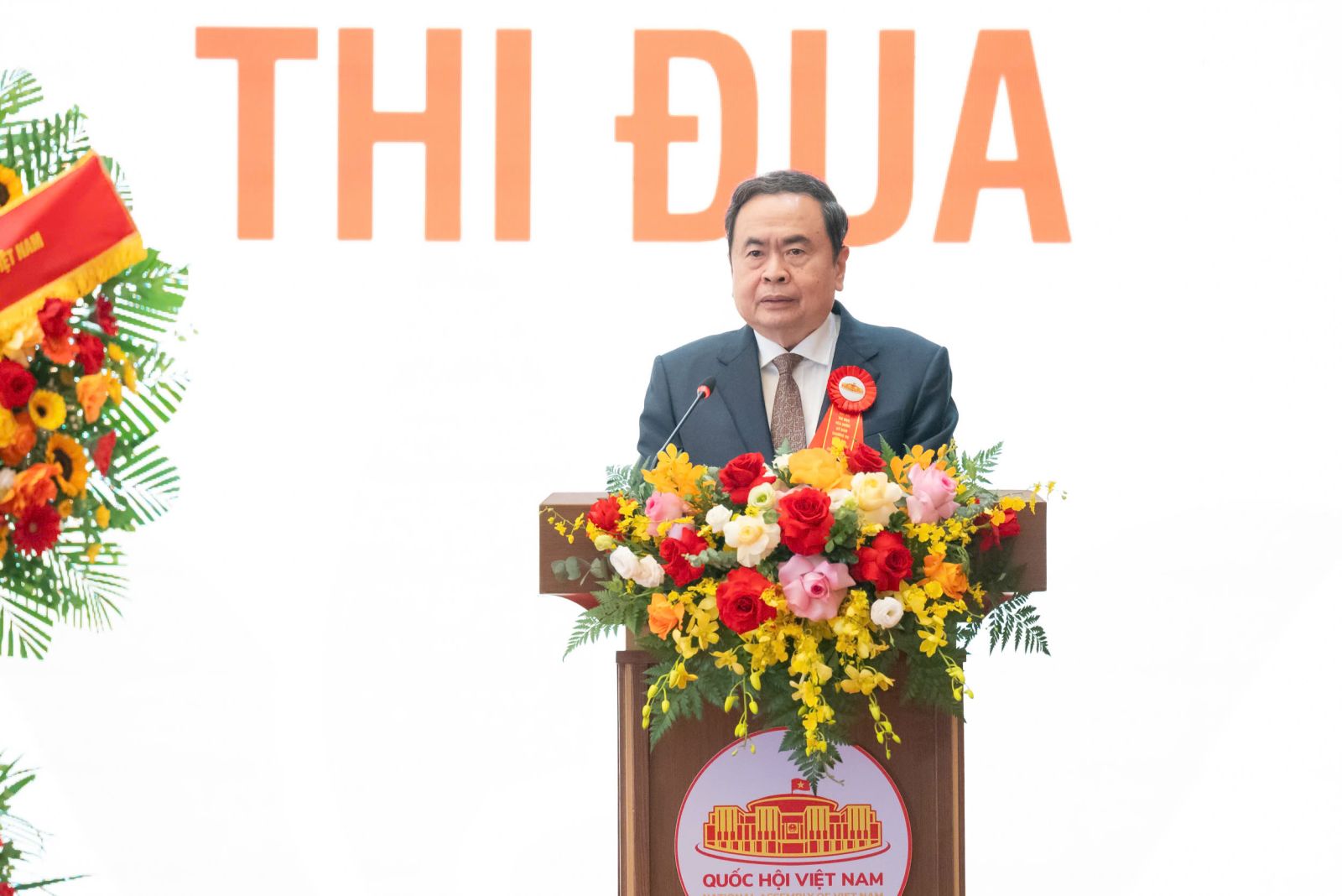 Phát biểu chỉ đạo Đại hội, Chủ tịch Quốc hội Trần Thanh Mẫn nêu rõ: Cách đây 77 năm, Chủ tịch Hồ Chí Minh ra Lời kêu gọi thi đua ái quốc với thông điệp: “Thi đua là yêu nước, yêu nước thì phải thi đua và những người thi đua là những người yêu nước nhất”. Tư tưởng đó mãi trở thành nguồn lực tinh thần vô cùng to lớn để các đại biểu Quốc hội, các cơ quan và các cán bộ, công chức nỗ lực hơn, cống hiến nhiều hơn, góp phần vào sự nghiệp xây dựng Nhà nước pháp quyền xã hội chủ nghĩa, của dân, do dân và vì dân.