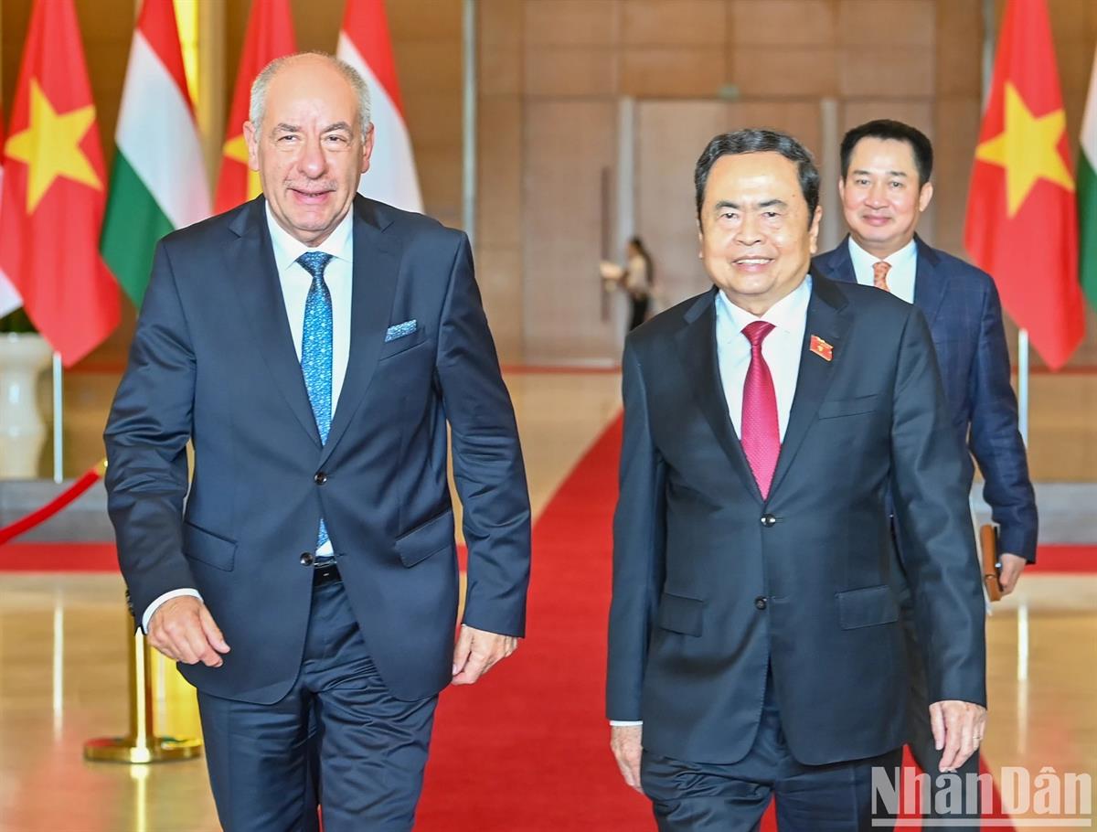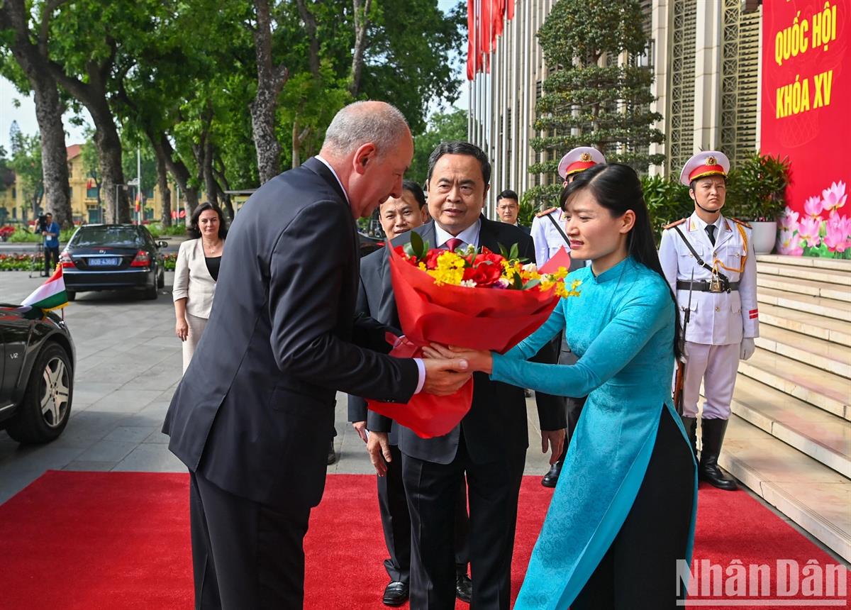 Chủ tịch Quốc hội Trần Thanh Mẫn đón Tổng thống Hungary Sulyok Tamas. |