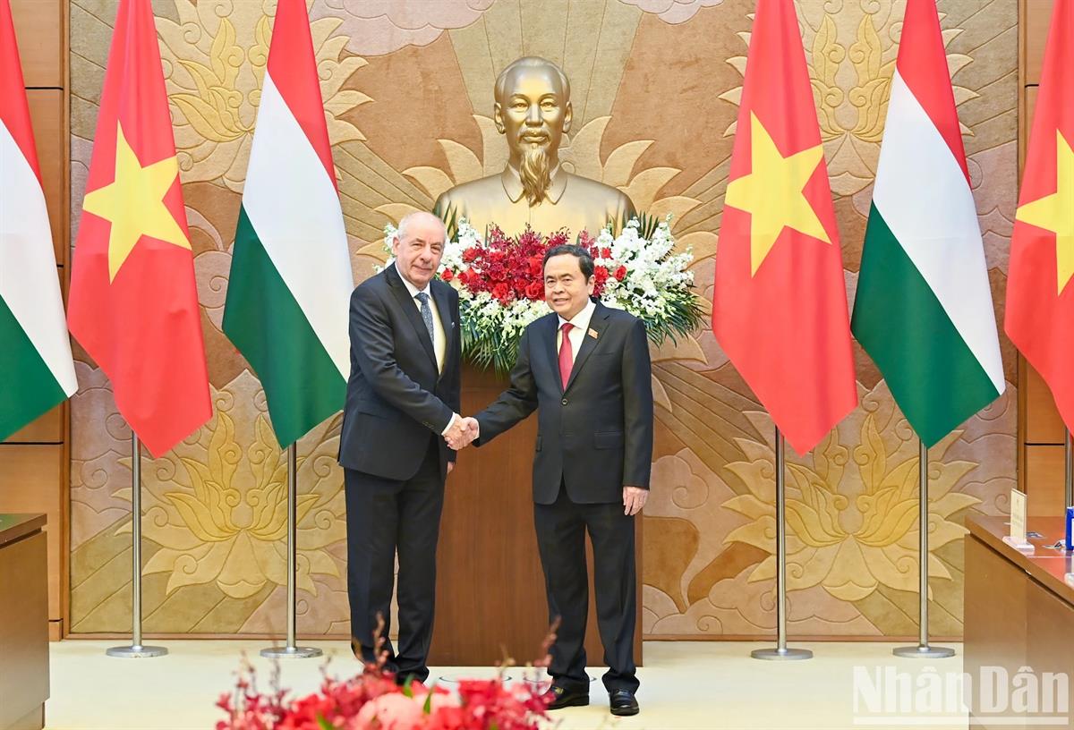 | Chủ tịch Quốc hội Trần Thanh Mẫn và Tổng thống Hungary Sulyok Tamas. |