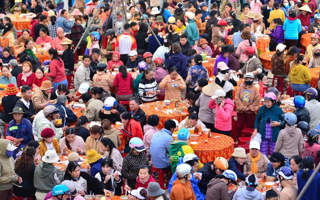 Các tô phở nóng hổi được chuẩn bị phục vụ người dân xã Hòa Thịnh.