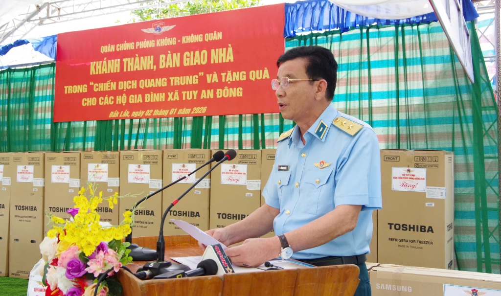 Sáng 2/1, Sư đoàn 377, Quân chủng Phòng không - Không quân (Bộ Quốc phòng) phối hợp với cấp ủy, chính quyền địa phương tổ chức lễ khánh thành, bàn giao nhà và trao quà cho các hộ gia đình bị thiệt hại do bão lũ tại xã Tuy An Đông.