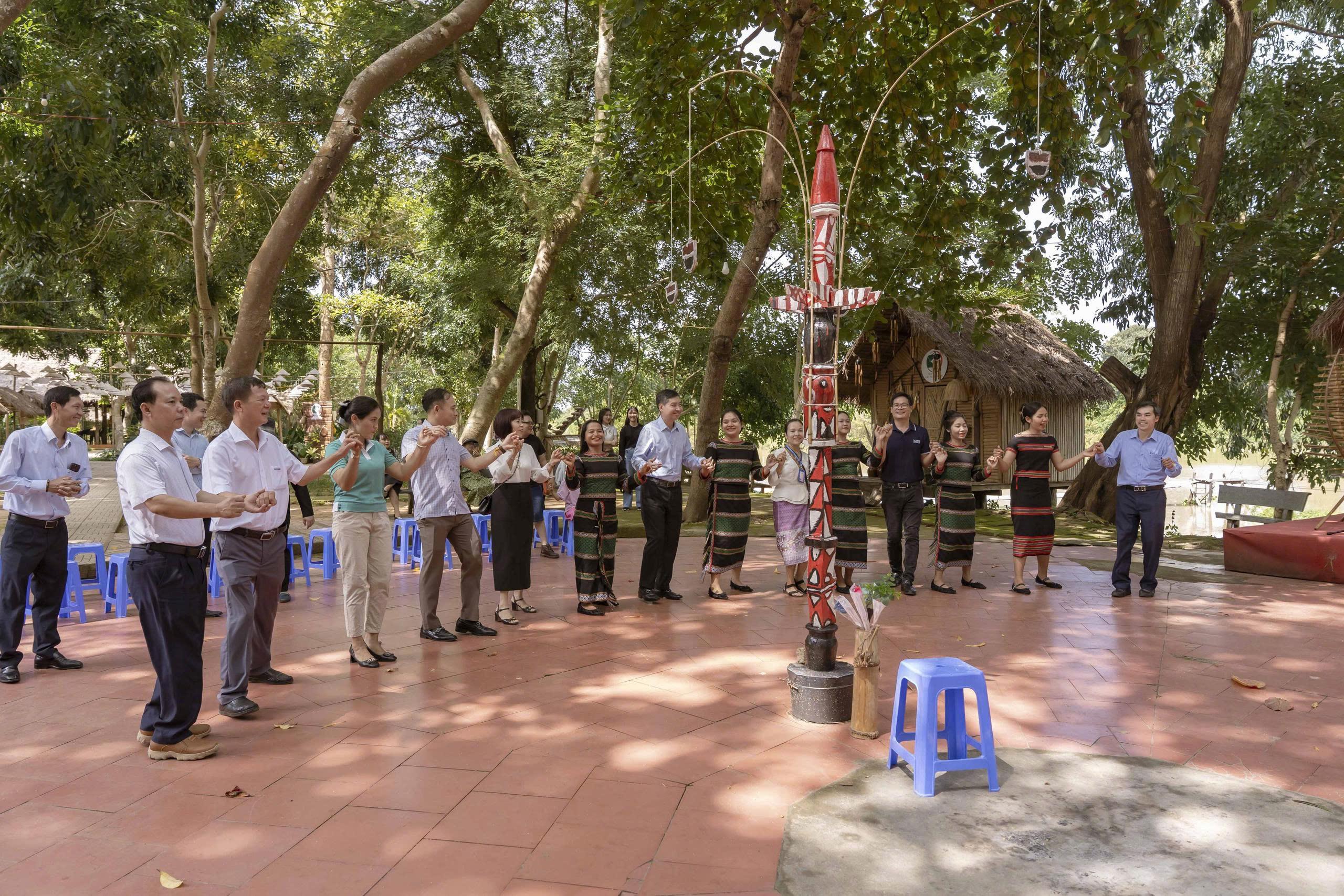 Đoàn công tác tham gia trải nghiệm hoạt động văn hóa, tìm hiểu phong tục truyền thống của người dân địa phương. - Ảnh : Simexco Daklak