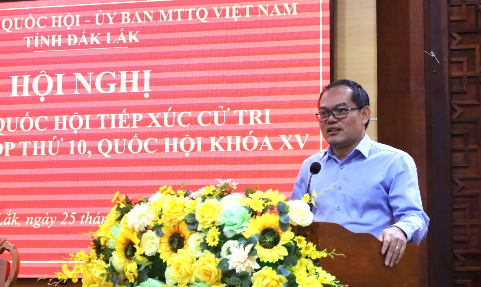 Chiều 25/9, Đoàn đại biểu Quốc hội tỉnh Đắk Lắk phối hợp Ban Thường trực Ủy ban MTTQ Việt Nam tỉnh Đắk Lắk tổ chức Hội nghị trực tiếp kết hợp trực tuyến tiếp xúc cử tri trước Kỳ họp thứ 10, Quốc hội khóa XV với gần 300 cử tri của phường Thành Nhất và các xã: Hòa Phú, Cuôr Đăng, Ea Bung, Ea Nuôl, Buôn Đôn và Ia Lốp.
