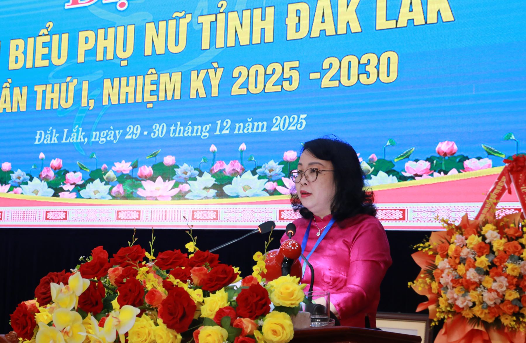 Phát biểu chỉ đạo đại hội, Phó Chủ tịch Trung ương Hội LHPN Việt Nam Nguyễn Thị Minh Hương ghi nhận, biểu dương những thành tích mà phụ nữ tỉnh Đắk Lắk đã đạt được trong nhiệm kỳ qua. Đồng thời đề nghị các cấp Hội LHPN tỉnh Đắk Lắk bám sát Nghị quyết Đại hội Đảng bộ tỉnh lần thứ I và định hướng của Trung ương Hội thông qua việc triển khai thực hiện nghiêm túc, hiệu quả 10 nhiệm vụ mà Tổng Bí thư Tô Lâm giao tại Lễ Kỷ niệm 95 năm thành lập tổ chức Hội LHPN để cụ thể hoá thành các nhiệm vụ trọng tâm trong nhiệm kỳ tới; hoạt động Hội luôn phải đặt hội viên, phụ nữ ở vị trí trung tâm, lấy quyền và lợi ích hợp pháp, chính đáng, sự tiến bộ của phụ nữ làm mục tiêu; cụ thể hóa và triển khai hiệu quả phong trào thi đua “Xây dựng người phụ nữ Việt Nam thời đại mới” phù hợp với đặc điểm của địa phương, phù hợp với từng nhóm đối tượng phụ nữ; triển khai hiệu quả các chương trình mục tiêu quốc gia, các đề án của Chính phủ trên địa bàn tỉnh, nhất là Đề án Hỗ trợ phụ nữ khởi nghiệp giai đoạn 2026 - 2035; đẩy mạnh ứng dụng công nghệ thông tin, chuyển đổi số trong hoạt động Hội và hỗ trợ phụ nữ; nâng cao chất lượng tổ chức Hội cơ sở, đặc biệt là ở các chi hội/tổ phụ nữ sau khi thực hiện mô hình chính quyền địa phương 2 cấp…