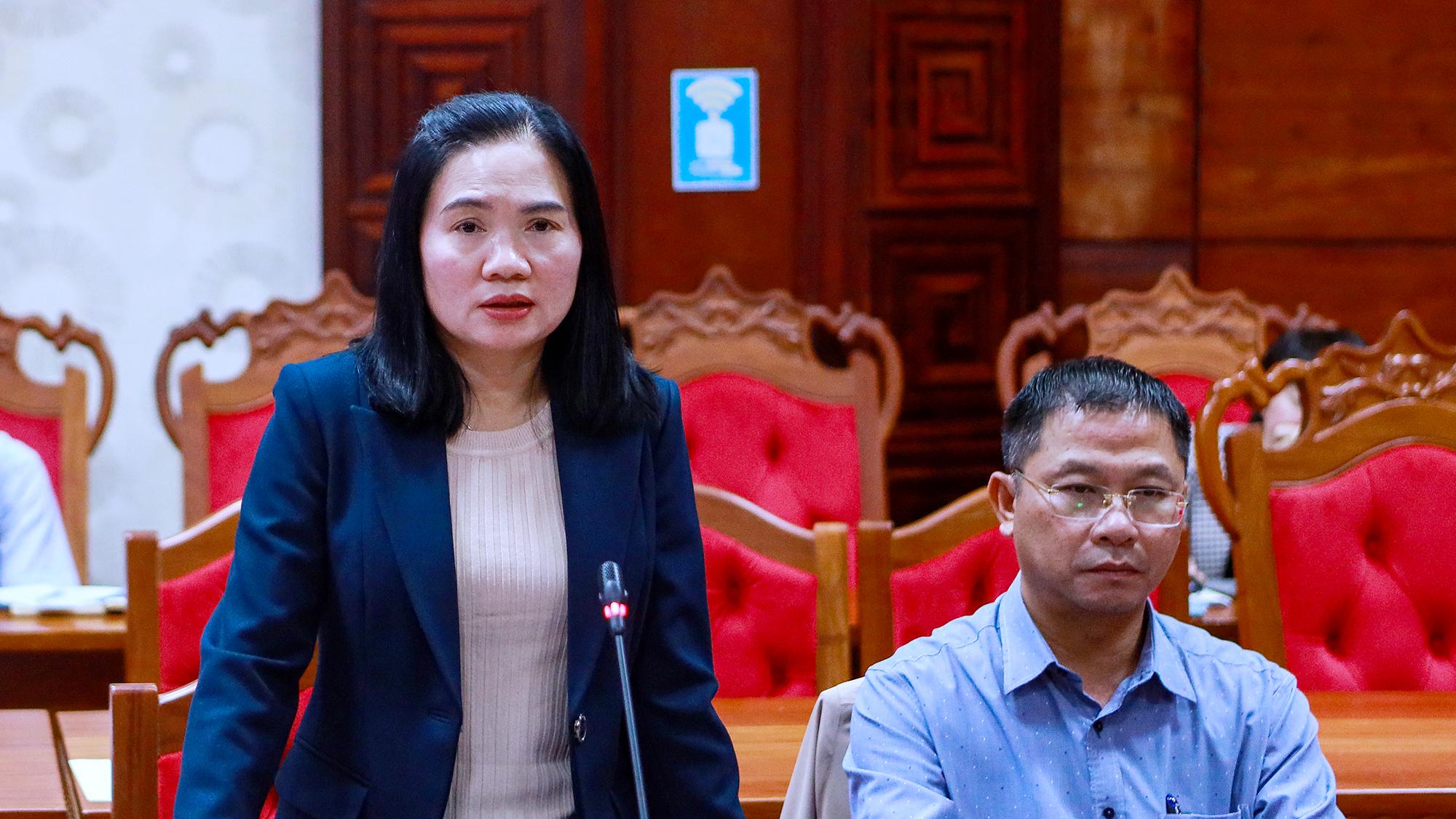 Đồng chí Đinh Thị Thu Thanh - Ủy viên Ban Thường vụ Tỉnh ủy, Trưởng Ban Tuyên giáo và Dân vận Tỉnh ủy phát biểu tại phiên họp.