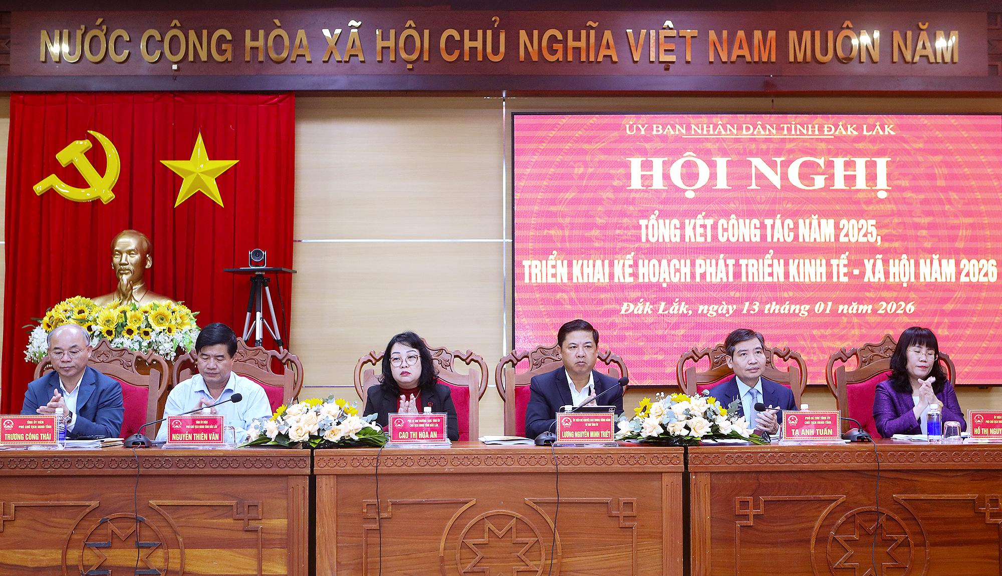 Theo báo cáo tại hội nghị, Năm 2025, với tinh thần khẩn trương, quyết liệt, tỉnh Đắk Lắk tập trung hoàn thành khối lượng công việc lớn, bảo đảm tiến độ sắp xếp tổ chức bộ máy, đơn vị hành chính; đồng thời từng bước tháo gỡ các điểm nghẽn nội tại và chủ động ứng phó biến động từ bên ngoài. Trước diễn biến phức tạp của thiên tai, biến đổi khí hậu, tỉnh huy động tối đa nguồn lực để ứng phó, khắc phục hậu quả, sớm ổn định đời sống nhân dân và khôi phục sản xuất. Nhờ triển khai đồng bộ các giải pháp, kinh tế - xã hội tiếp tục duy trì phát triển, một số chỉ tiêu tăng trưởng khá, vượt kịch bản.