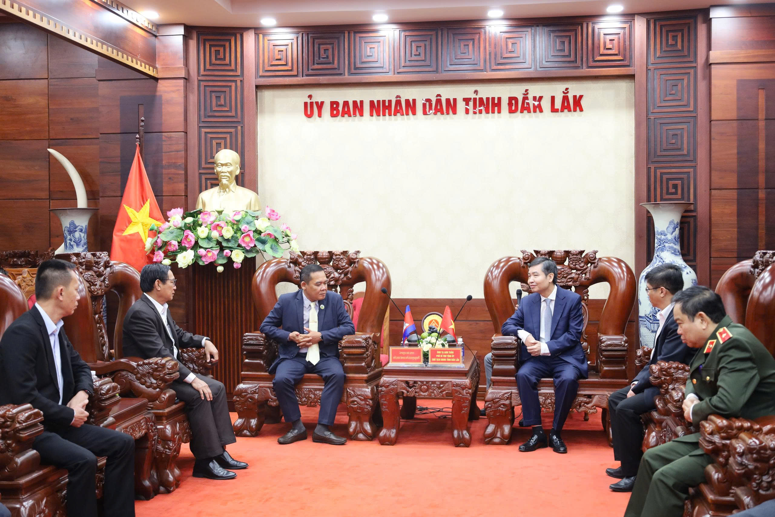 Chủ tịch UBND tỉnh Đắk Lắk nhiệt liệt chào mừng đoàn công tác tỉnh Mondulkiri đến thăm và làm việc tại tỉnh trong những ngày đầu năm mới 2026; đồng thời, thông tin cho lãnh đạo tỉnh bạn về tình hình kinh tế - xã hội của tỉnh Đắk Lắk nói riêng và Việt Nam nói chung. Lãnh đạo tỉnh nhấn mạnh, mối quan hệ giữa hai tỉnh thời gian qua ngày càng phát triển, gắn bó và thiết thực hơn. Đặc biệt, từ ngày 01/7/2025, tỉnh Đắk Lắk đã chính thức sáp nhập với tỉnh Phú Yên, hình thành tỉnh Đắk Lắk mới với quy mô diện tích hơn 18.000 km² và 102 đơn vị hành chính cấp xã, với đường bờ biển dài 189 km và có gần 72 km đường biên giới giáp với tỉnh Mondulkiri.