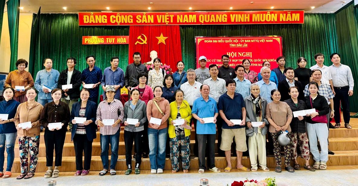 Dịp này, Đoàn ĐBQH tỉnh đã trao 120 suất quà, mỗi suất trị giá 1 triệu đồng, cho người dân bị ảnh hưởng bởi mưa lũ tại ba phường Tuy Hòa, Phú Yên và Bình Kiến.