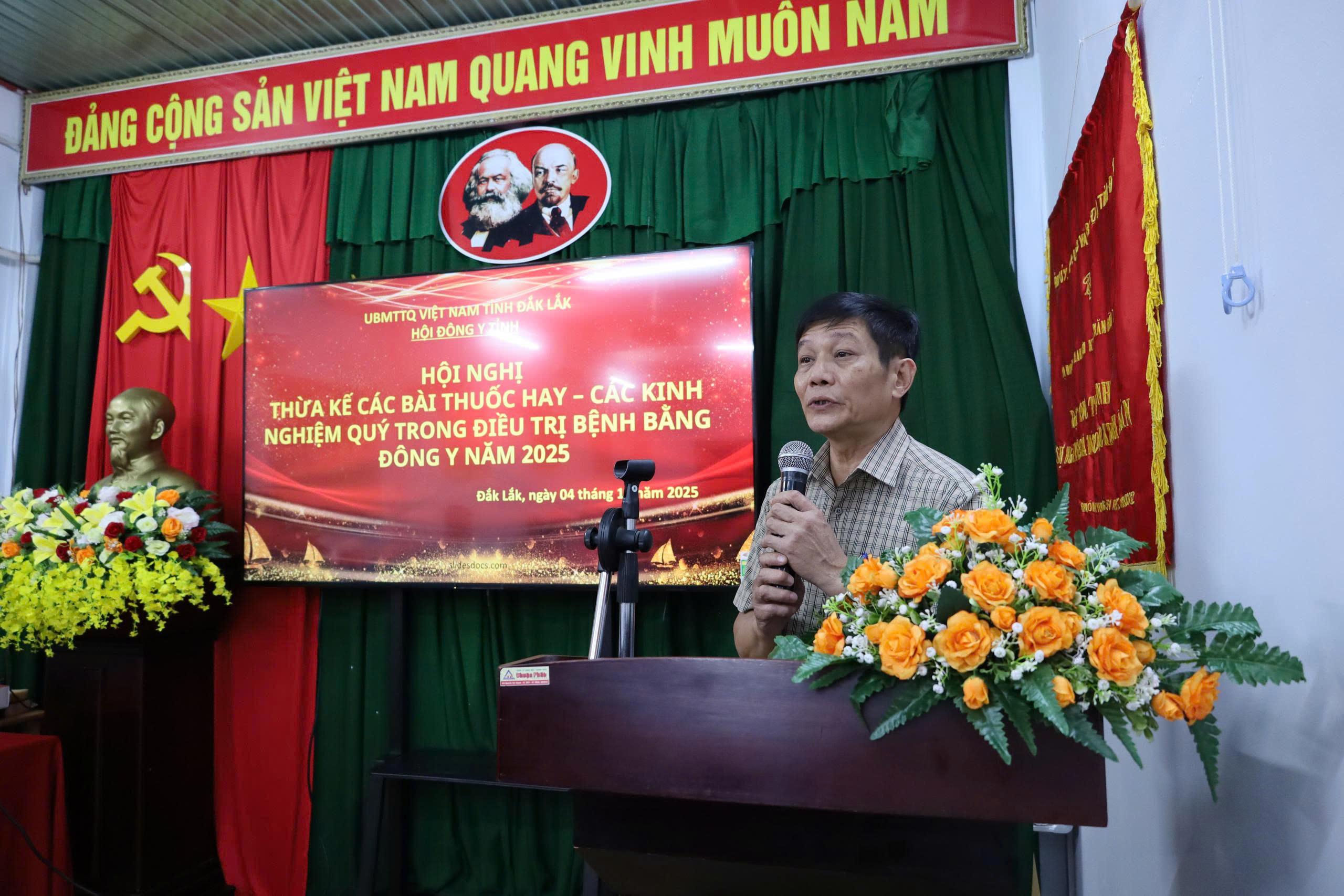 Ông Võ Thuận Hóa, Chủ tịch Hội Đông y tỉnh Đắk Lắk, cho biết trong năm 2025, Hội đã xây dựng Kế hoạch sưu tầm, thừa kế, bảo tồn bài thuốc. Kết quả nổi bật là các cấp Hội đã thừa kế được 279 bài thuốc và kinh nghiệm điều trị các loại bệnh mãn tính. Nhiều địa phương như Krông Ana (cũ), Ea Súp (cũ) đã làm tốt công tác này. Bên cạnh đó, Hội đã phát triển và duy trì được 155 vườn thuốc và 11.228 khóm thuốc gia đình. Hội nghị cũng là dịp để đề xuất các giải pháp bảo tồn, tránh nguy cơ thất truyền các bài thuốc và kinh nghiệm điều trị quý giá.