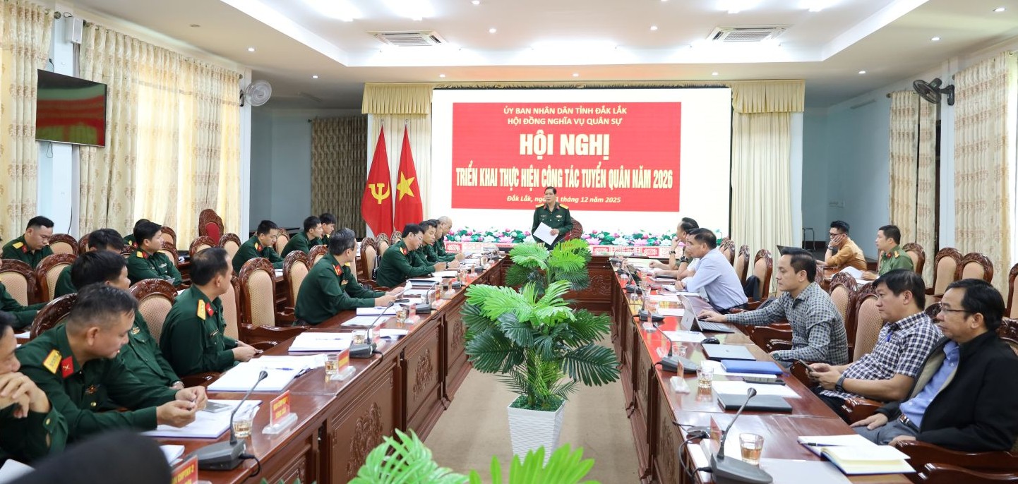 Chiều 11/12, Hội đồng nghĩa vụ Quân sự tỉnh Đắk Lắk tổ chức Hội nghị triển khai công tác tuyển quân năm 2026. Đại tá Niê Ta – Chỉ huy trưởng Bộ Chỉ huy Quân sự tỉnh, Phó Chủ tịch Thường trực Hội đồng chủ trì.