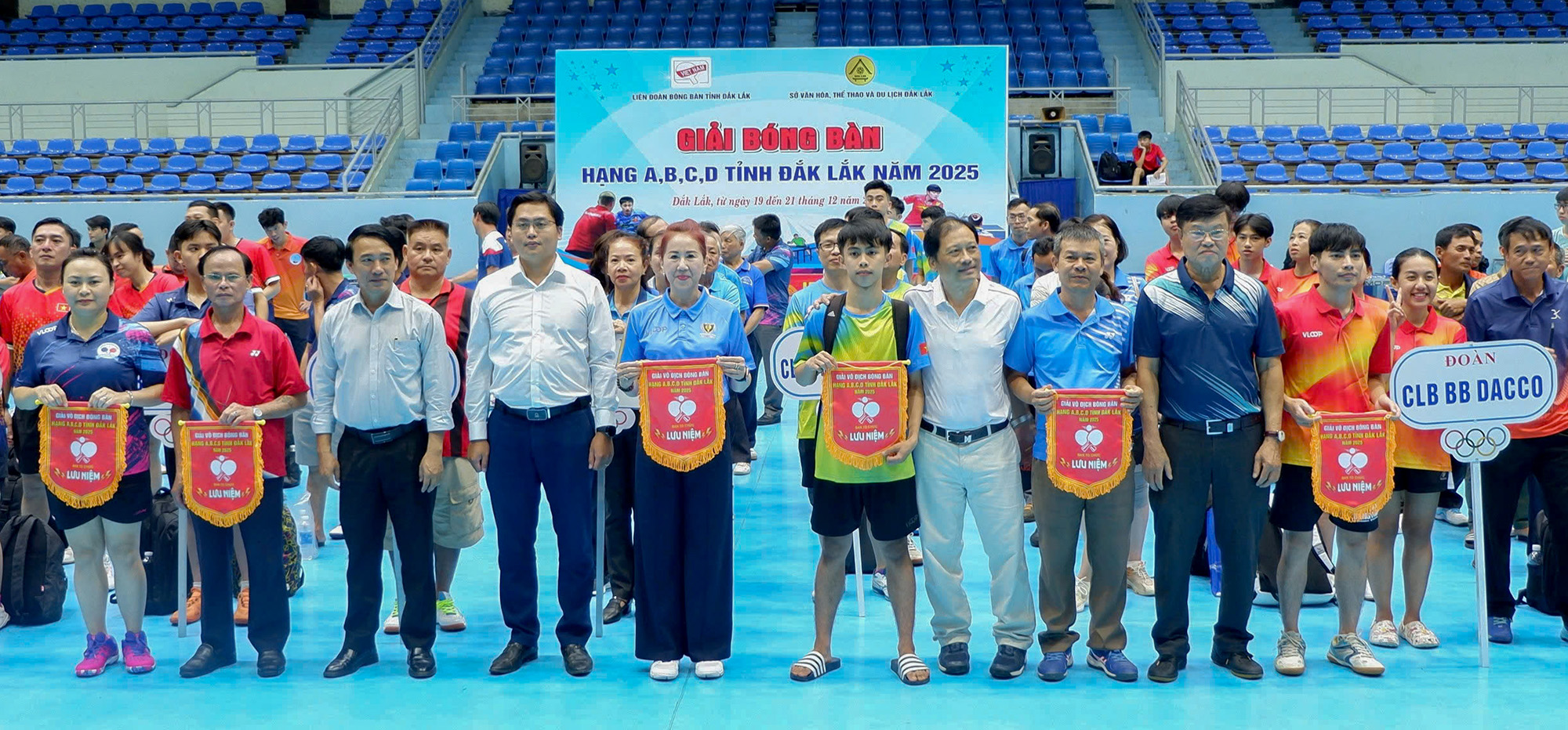 Tối 19/12, tại Nhà thi đấu Thể dục Thể thao tỉnh Đắk Lắk, Liên đoàn Bóng bàn tỉnh Đắk Lắk phối hợp với Sở Văn hóa, Thể thao và Du lịch tổ chức giải vô địch Bóng bàn hạng A, B, C, D năm 2025.