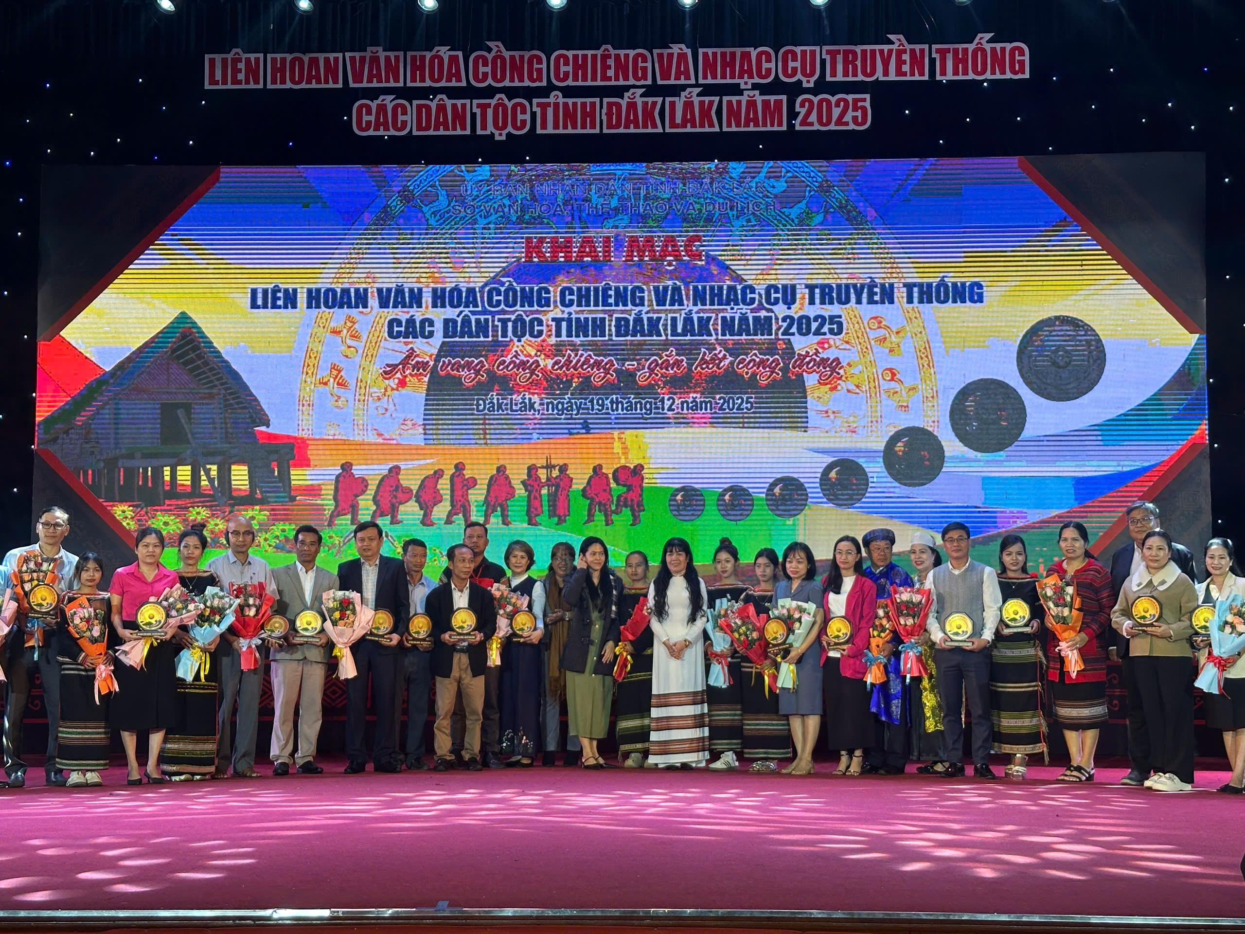 Sáng 19/12, Sở Văn hóa, Thể thao và Du lịch tỉnh Đắk Lắk tổ chức khai mạc Liên hoan cồng chiêng và nhạc cụ truyền thống các dân tộc tỉnh Đắk Lắk năm 2025, với sự tham gia của gần 800 nghệ nhân đến từ 26 xã, phường trên địa bàn tỉnh, góp phần tôn vinh và lan tỏa giá trị di sản văn hóa truyền thống trong cộng đồng.